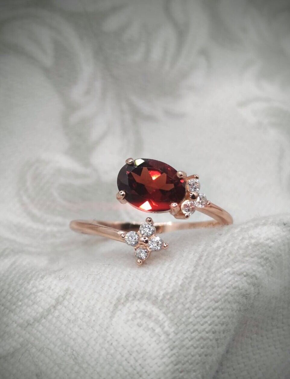シルバー製ピンクゴールドカラー ガーネット フォークリング 1月誕生石 12号以上での使用推奨