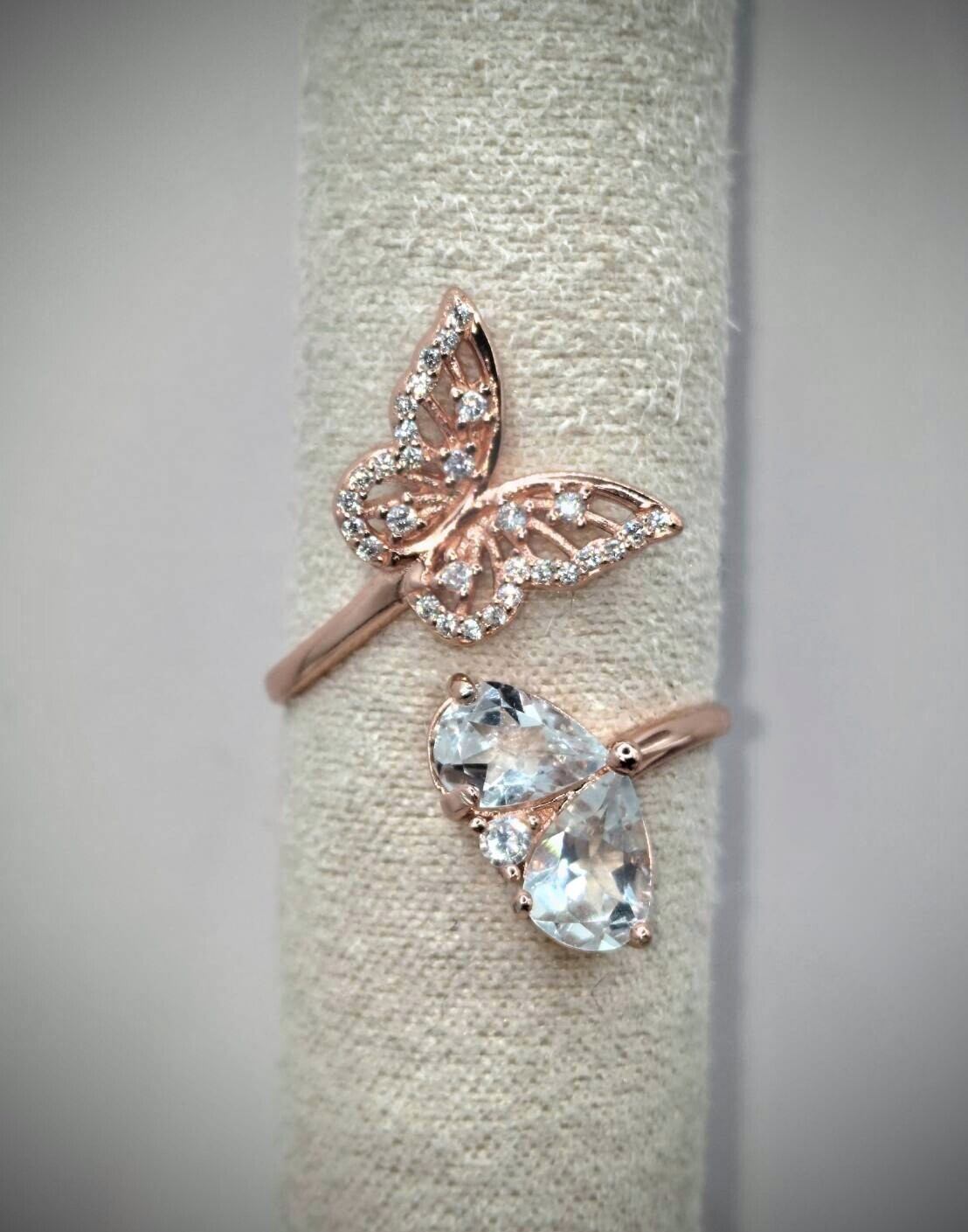 可愛い蝶デザインにアクアマリンを2石使用。