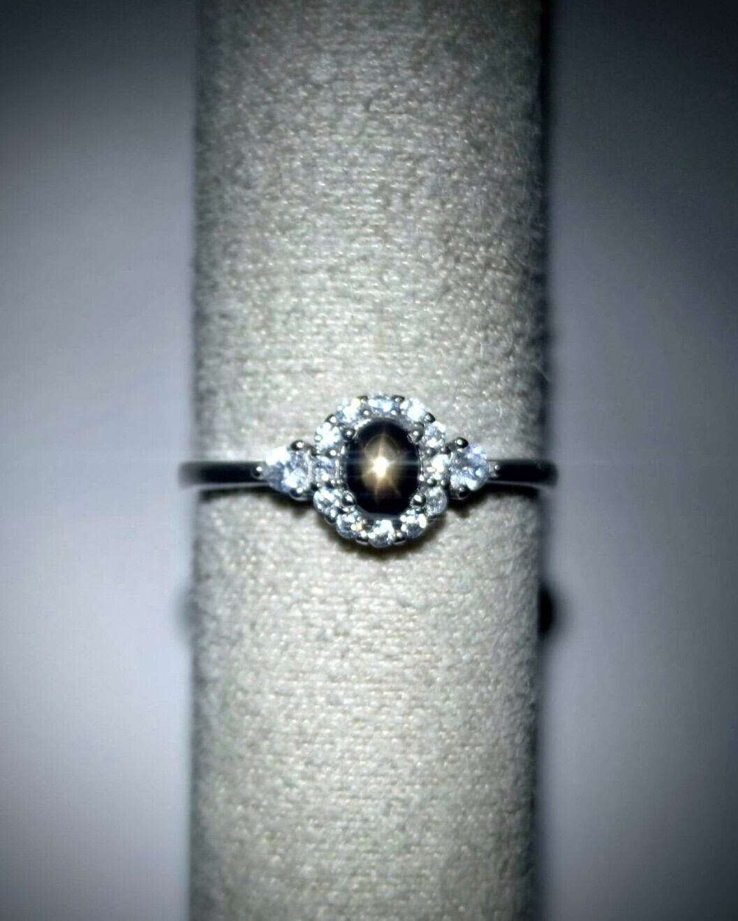 シルバー製 スターサファイア オーバルデザインリング フリーサイズ