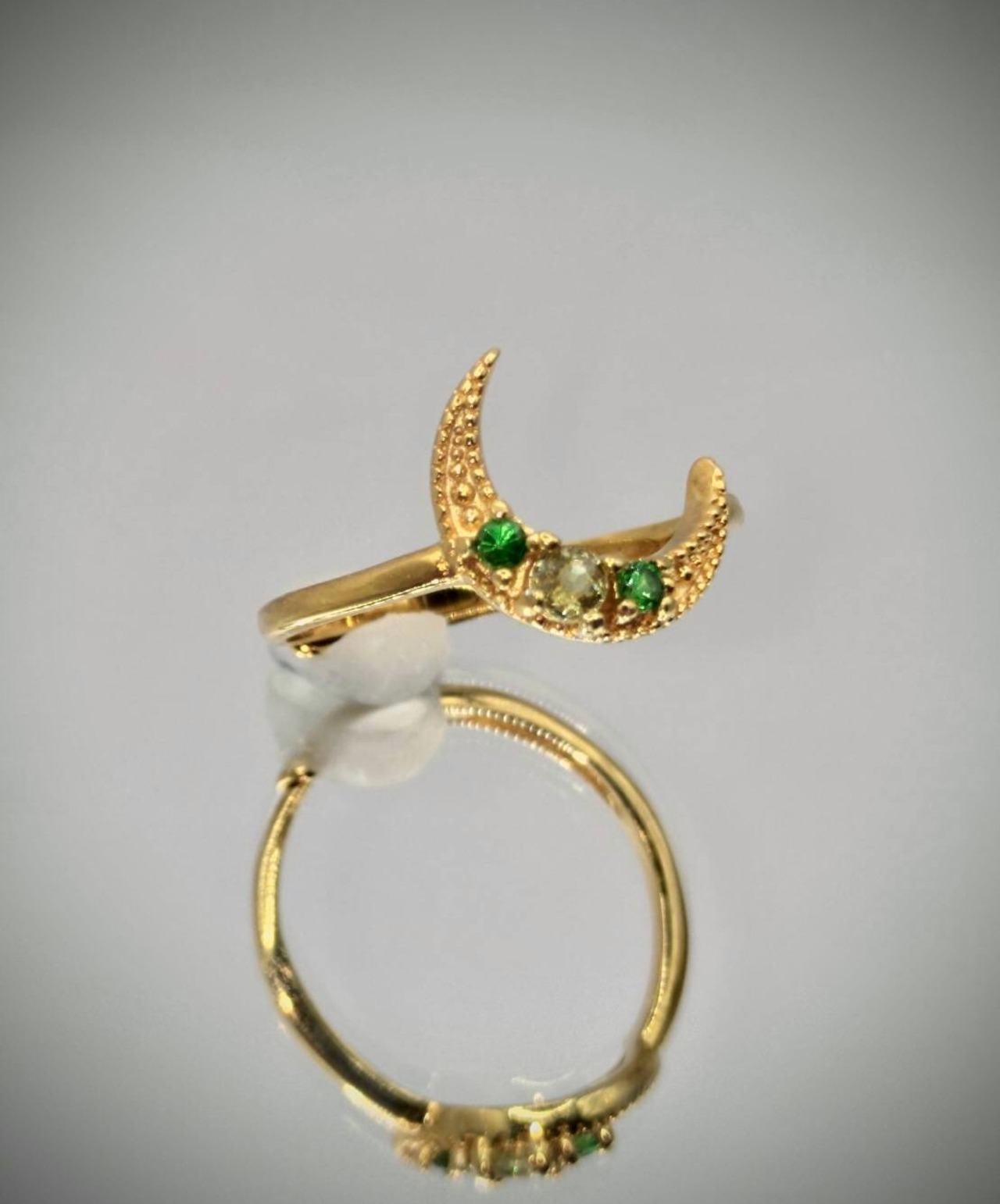 シルバー製 デマントイドガーネット&ツァボライトガーネットの三日月リング。