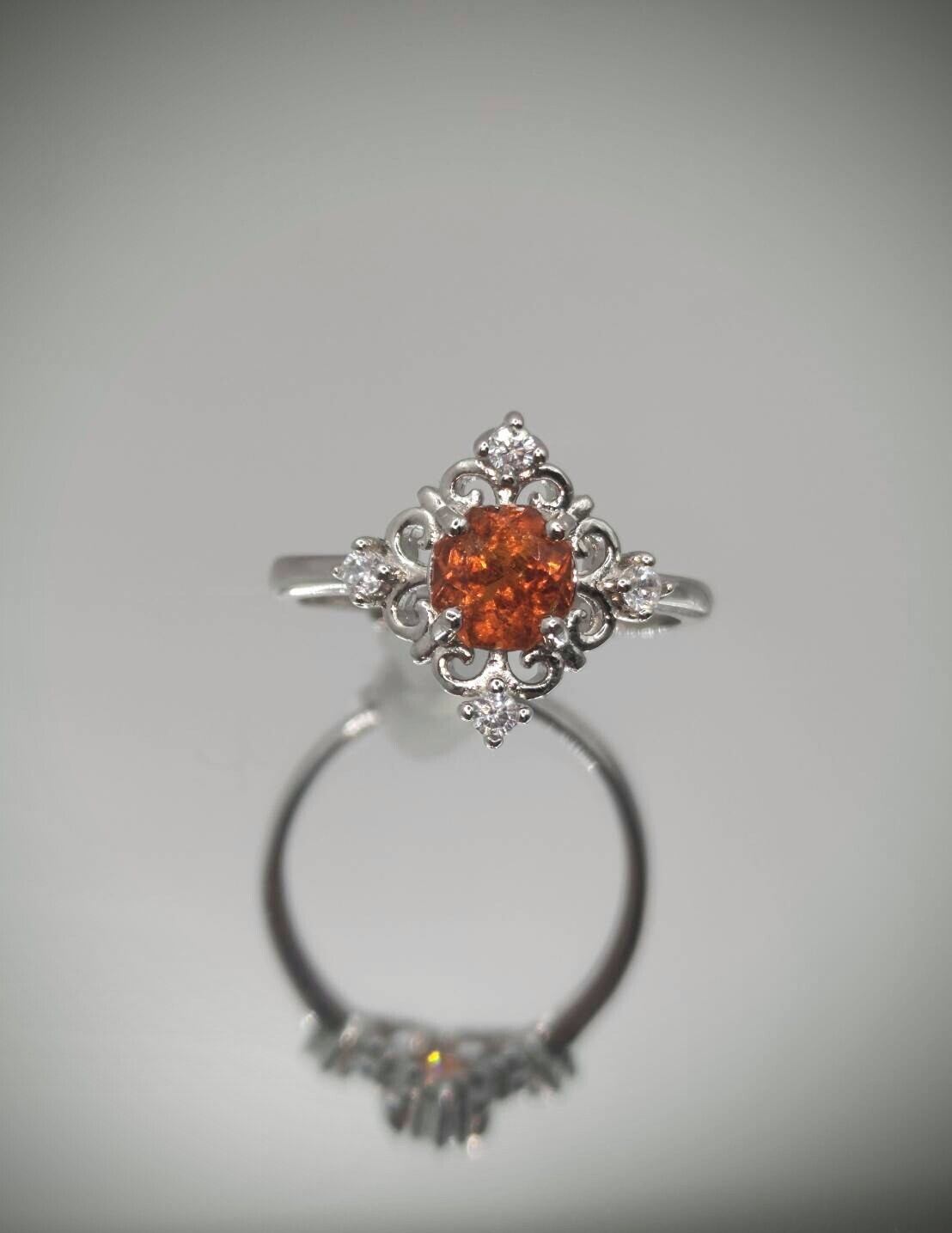 シルバー製 スペサルティンガーネットのアンティークデザインリング。