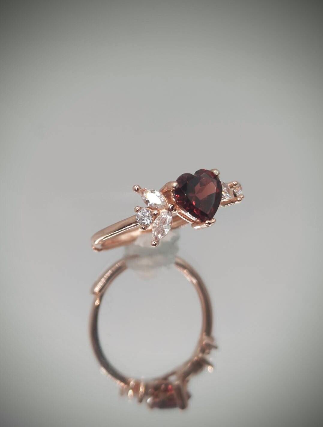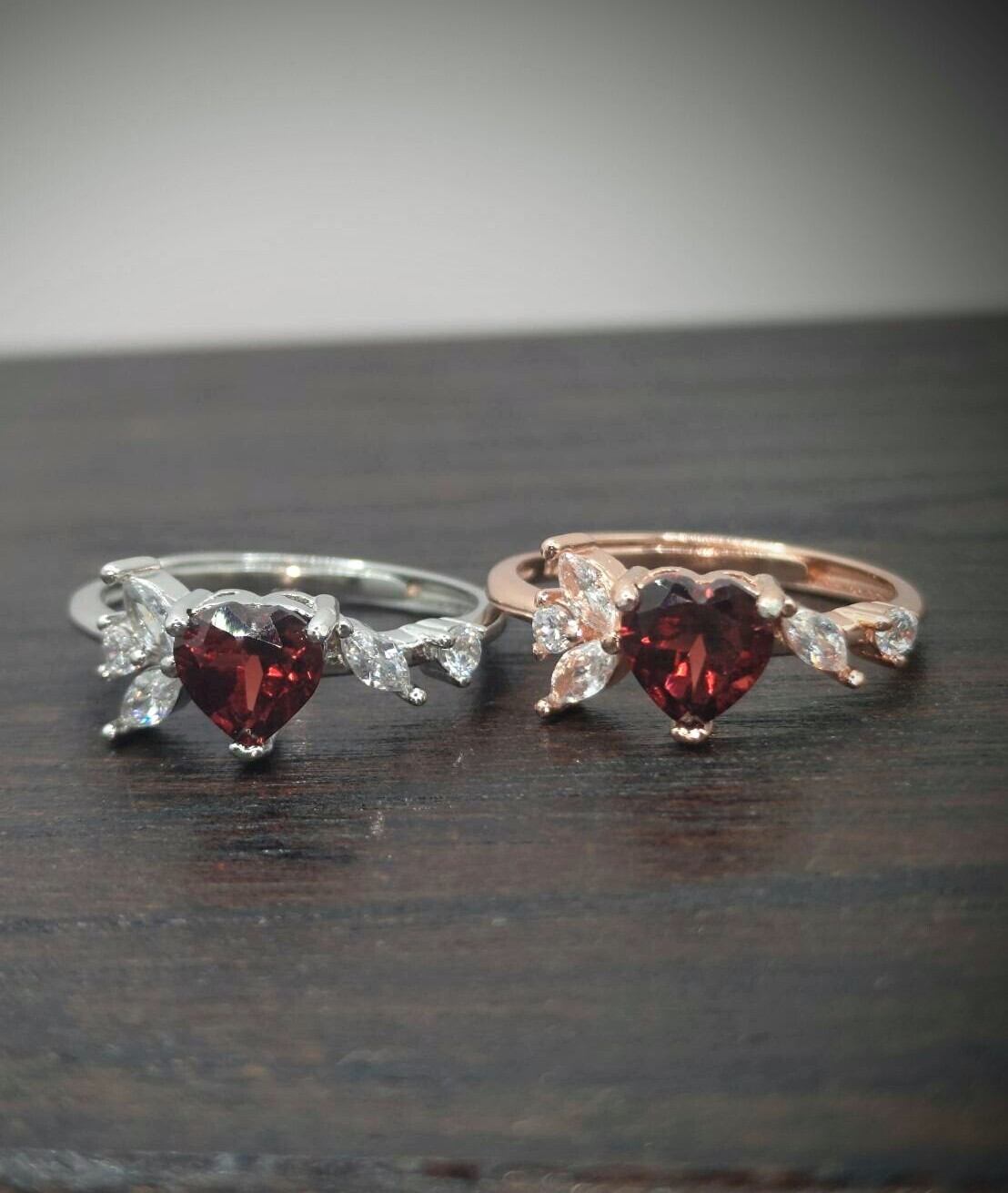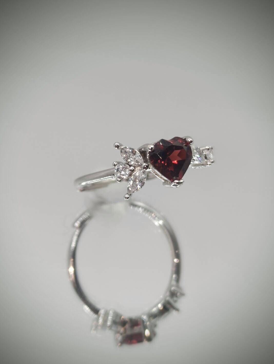 シルバー製シルバーカラー&ピンクゴールドカラー ガーネット ハートリング 1月誕生石 フリーサイズ