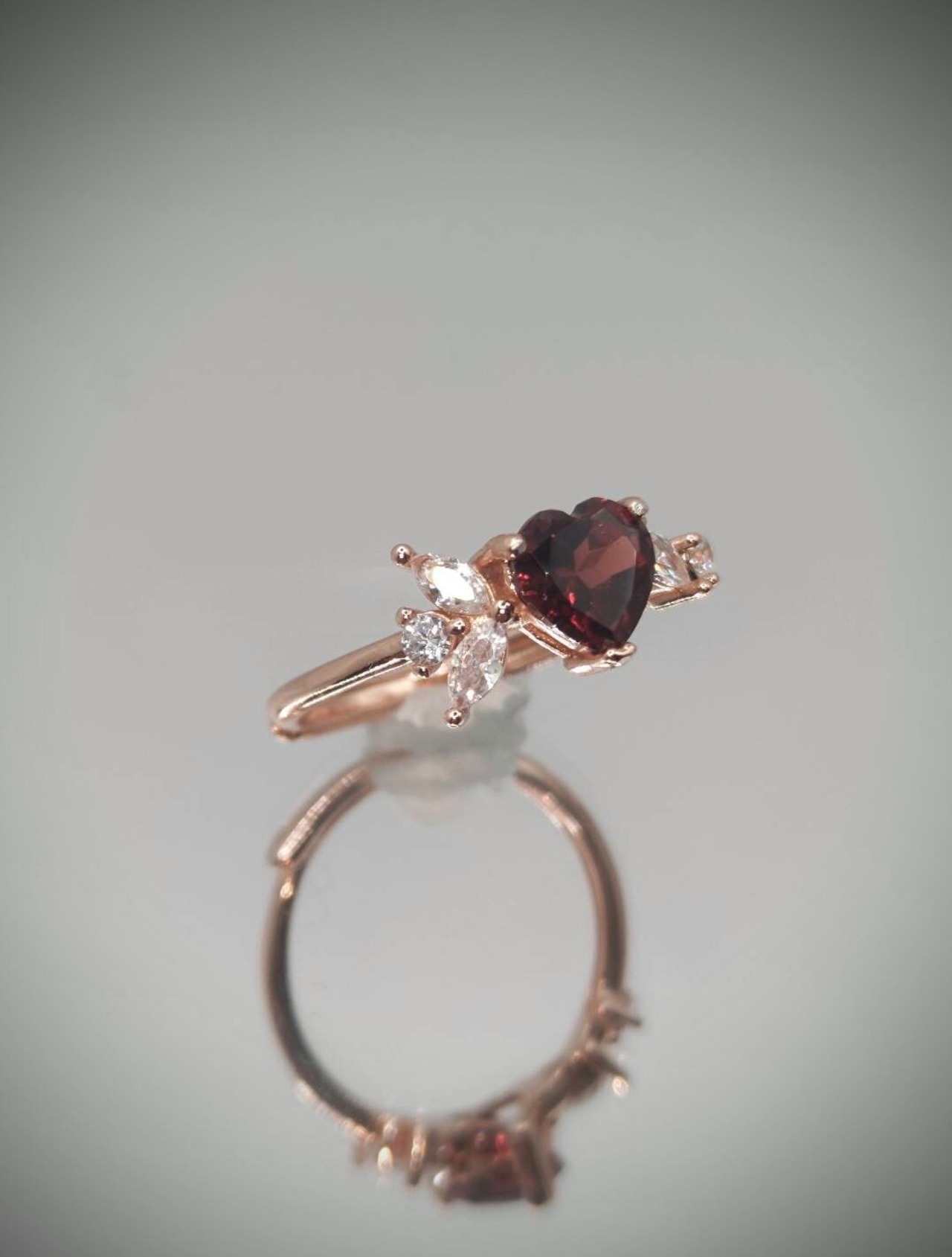 シルバー製シルバーカラー&ピンクゴールドカラー ガーネットのハートリング。