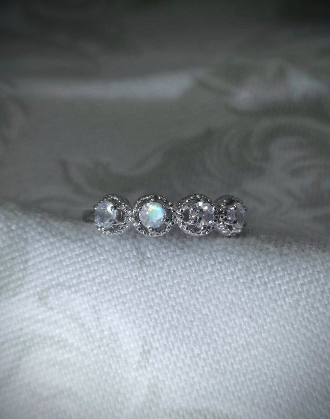 シルバー製 レインボームーンストーン 4石リング フリーサイズ