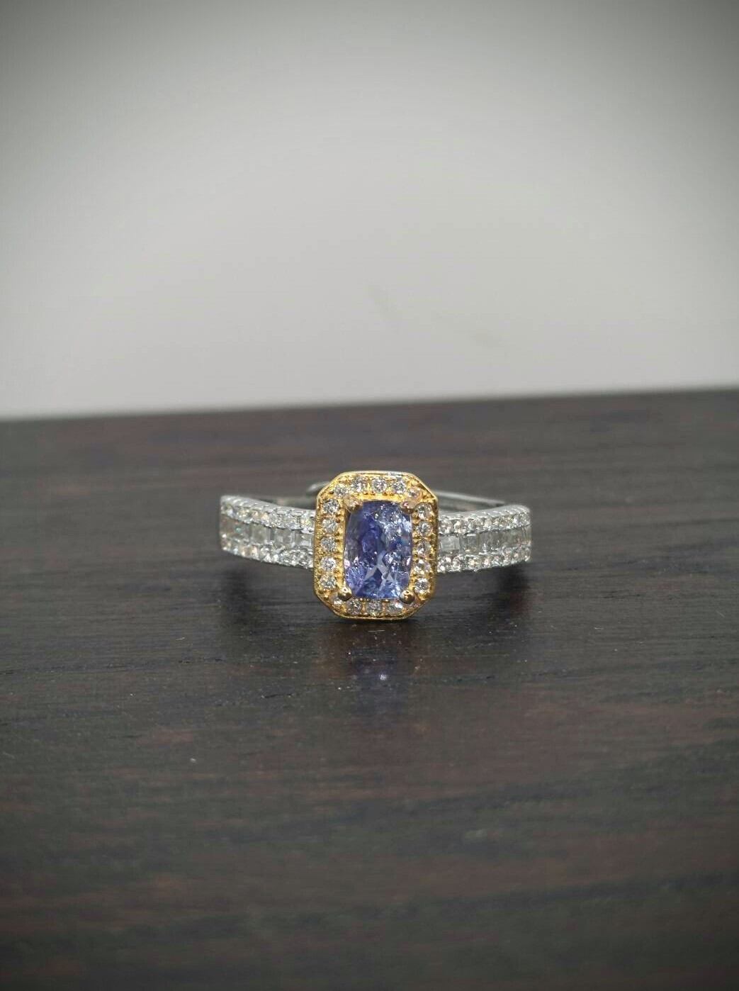 シルバー製コンビカラー タンザナイトのレクタングルデザインリング。