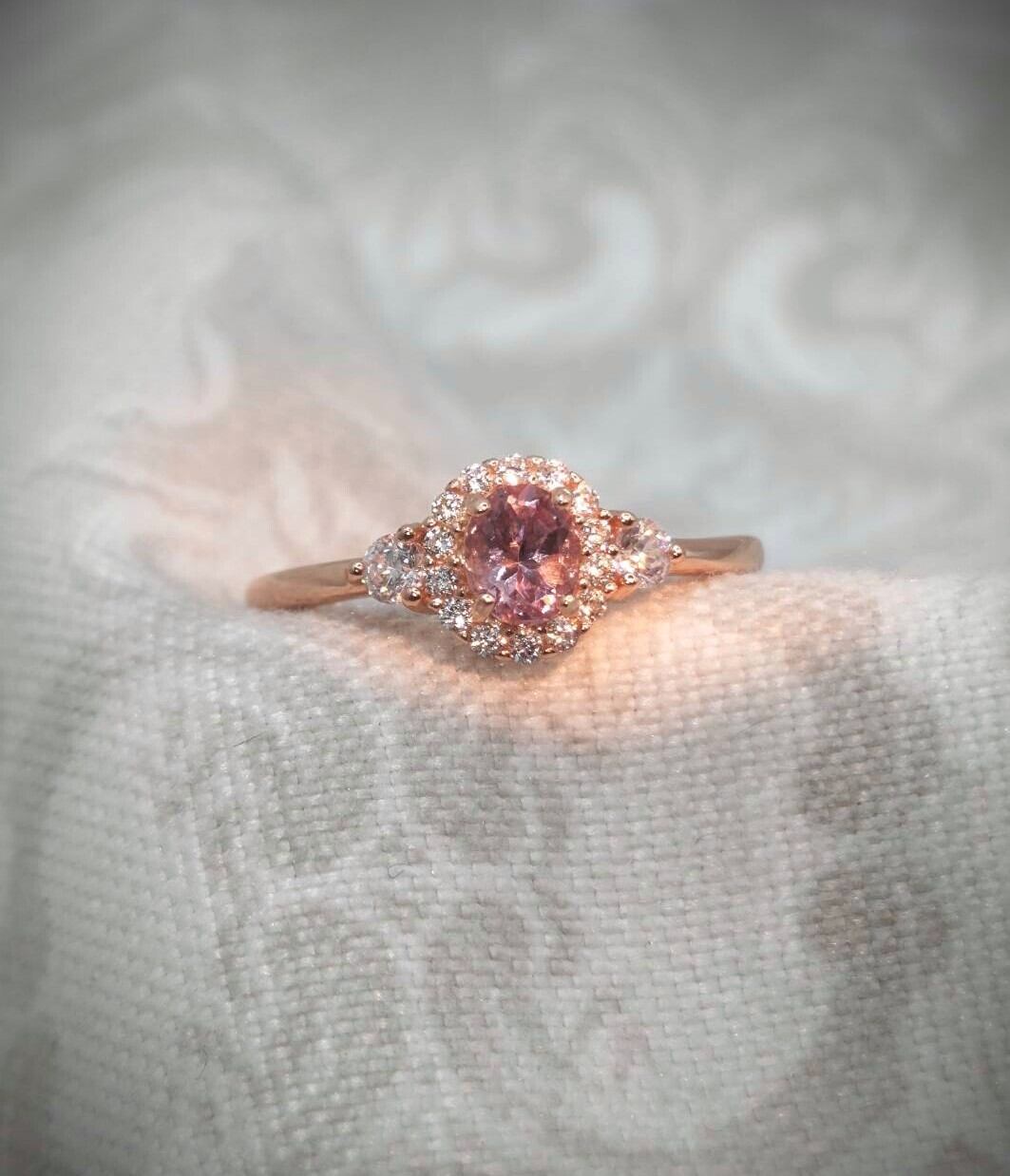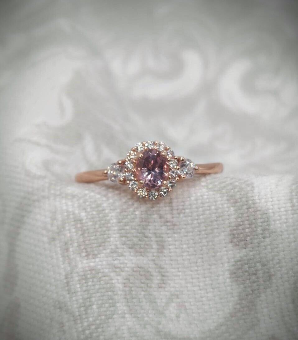 シルバー製ピンクゴールドカラー シンプルオーバルデザイン マラヤガーネット(カラーシフト)リング フリーサイズ