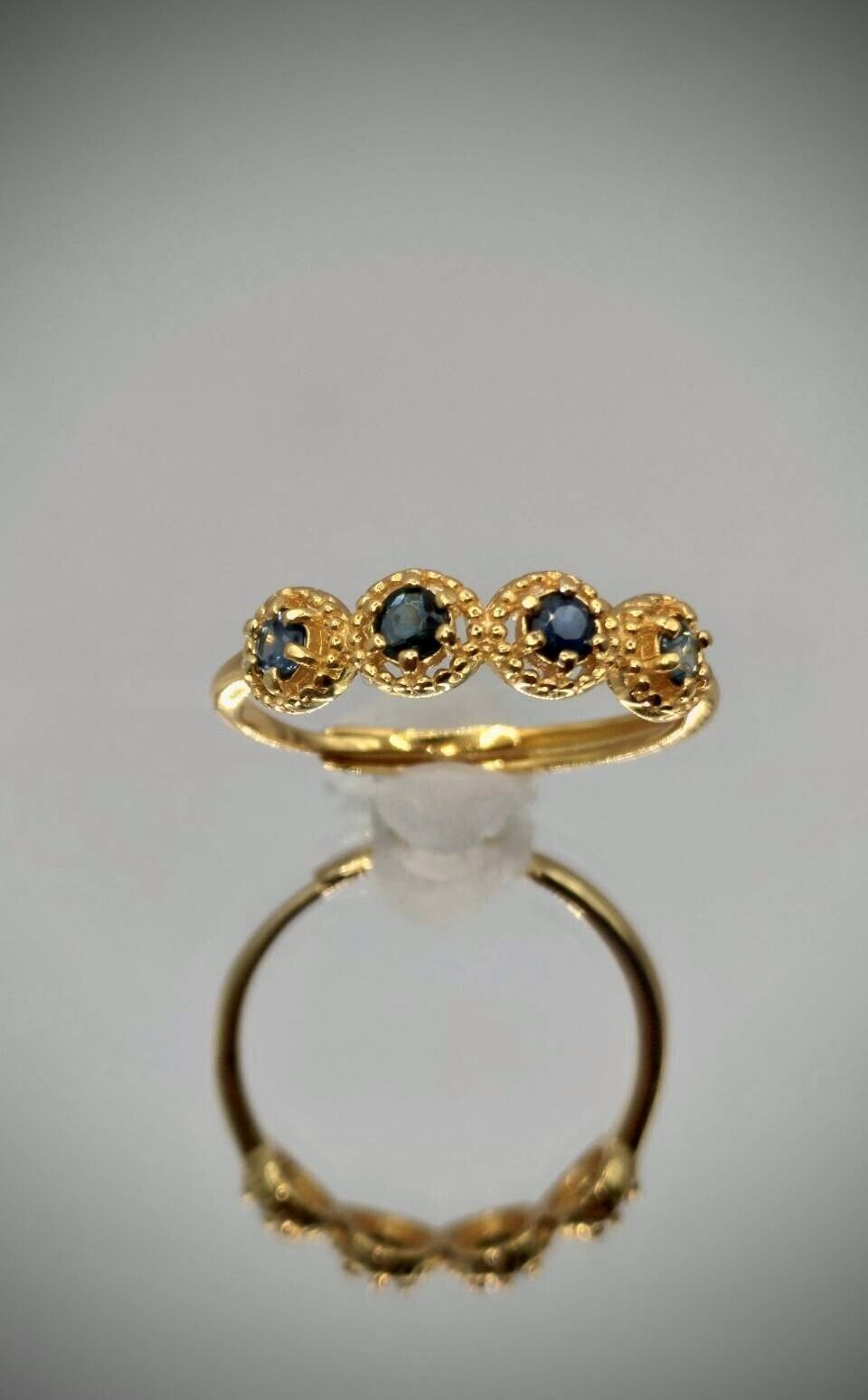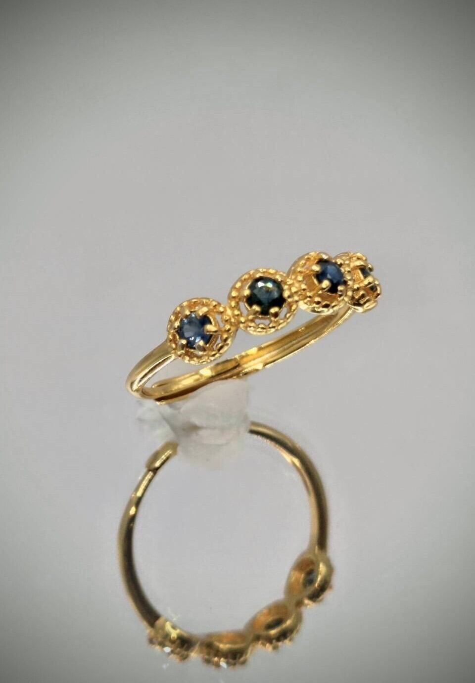 シルバー製ゴールドカラー サファイア 4石リング 9月誕生石 フリーサイズ