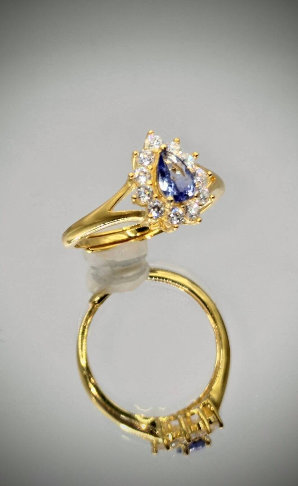 シルバー製ゴールドカラー タンザナイト ペタルリング 12月誕生石 フリーサイズ