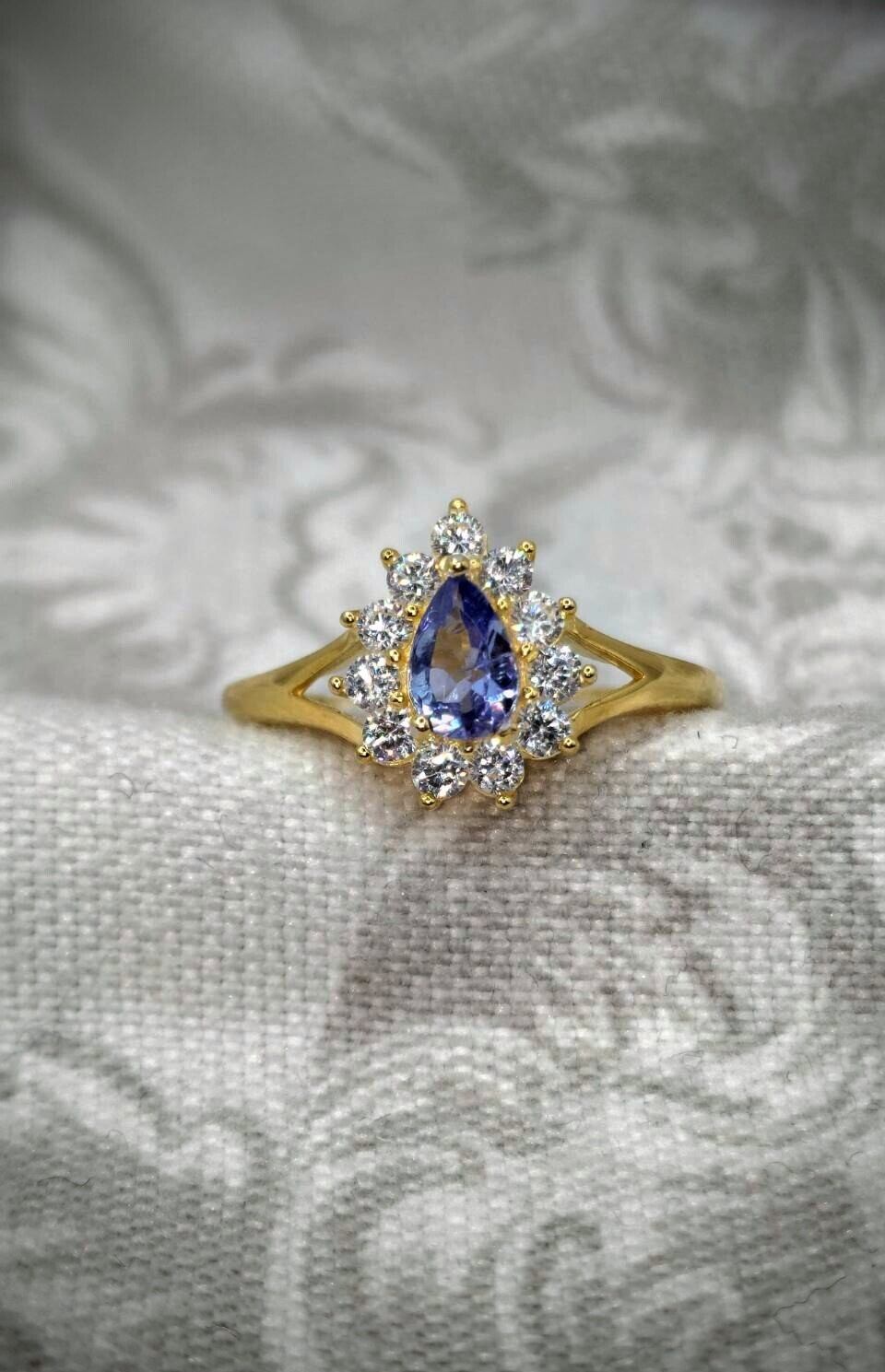シルバー製ゴールドカラー タンザナイトのペタルリング。