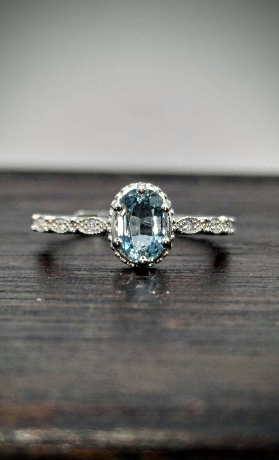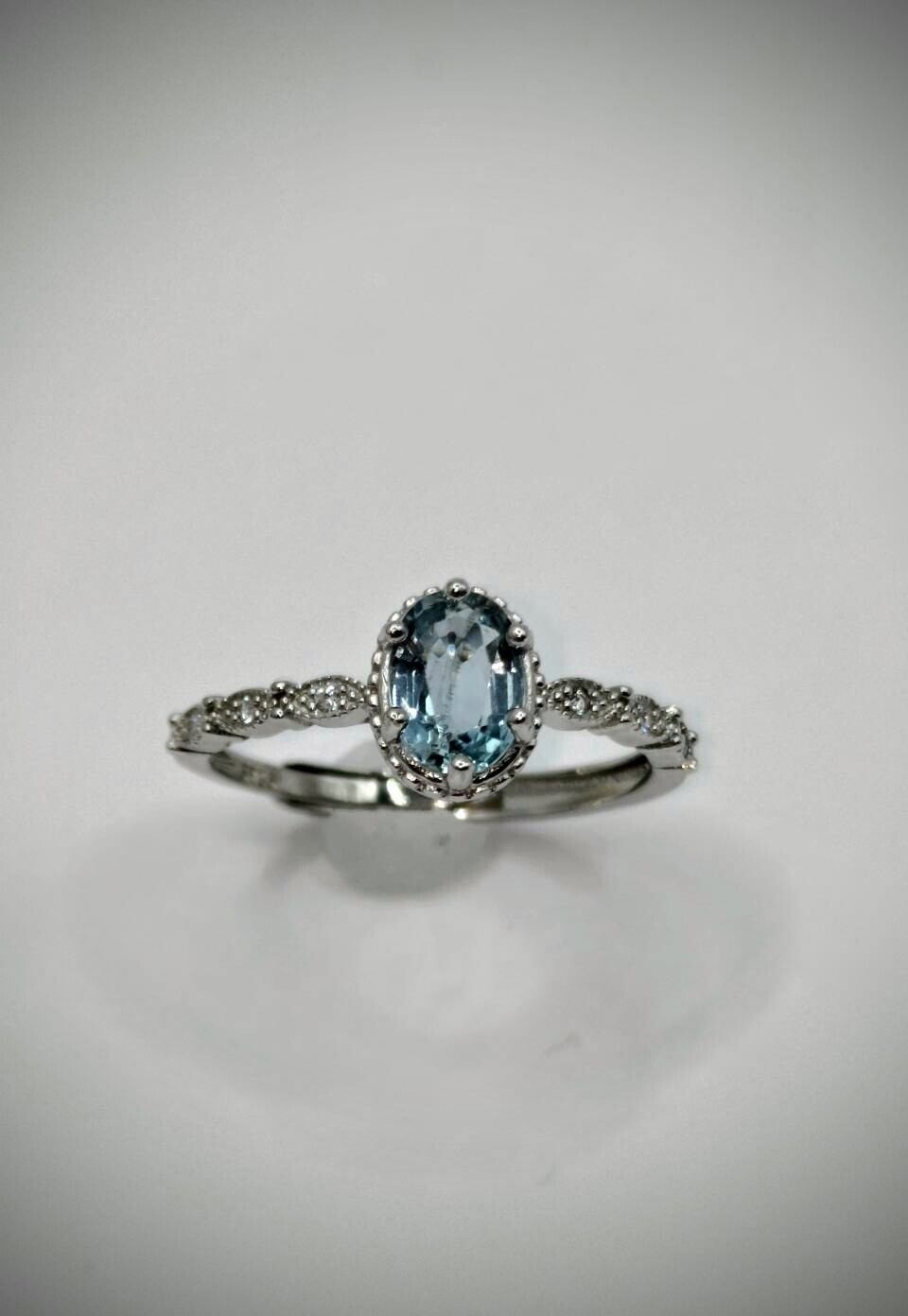 シルバー製 アクアマリン クラシカルオーバルリング 3月誕生石 ソーティング付き フリーサイズ