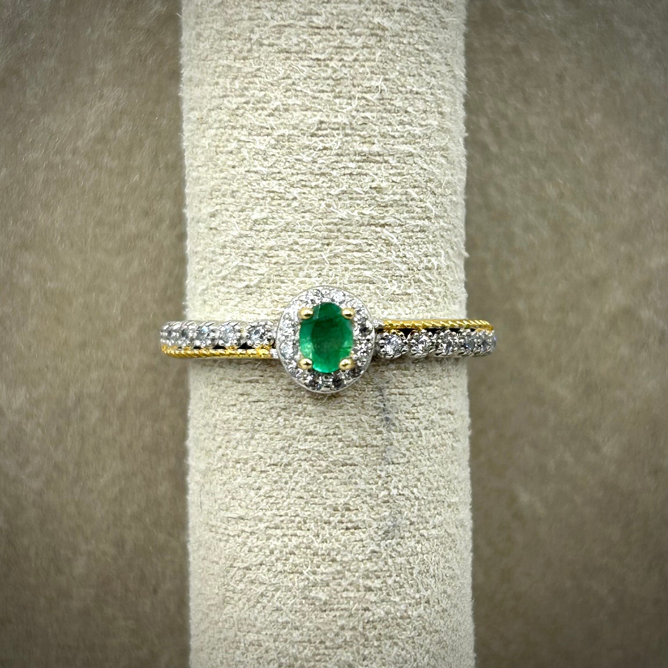シルバー製コンビカラー エメラルドリング 5月誕生石 フリーサイズ