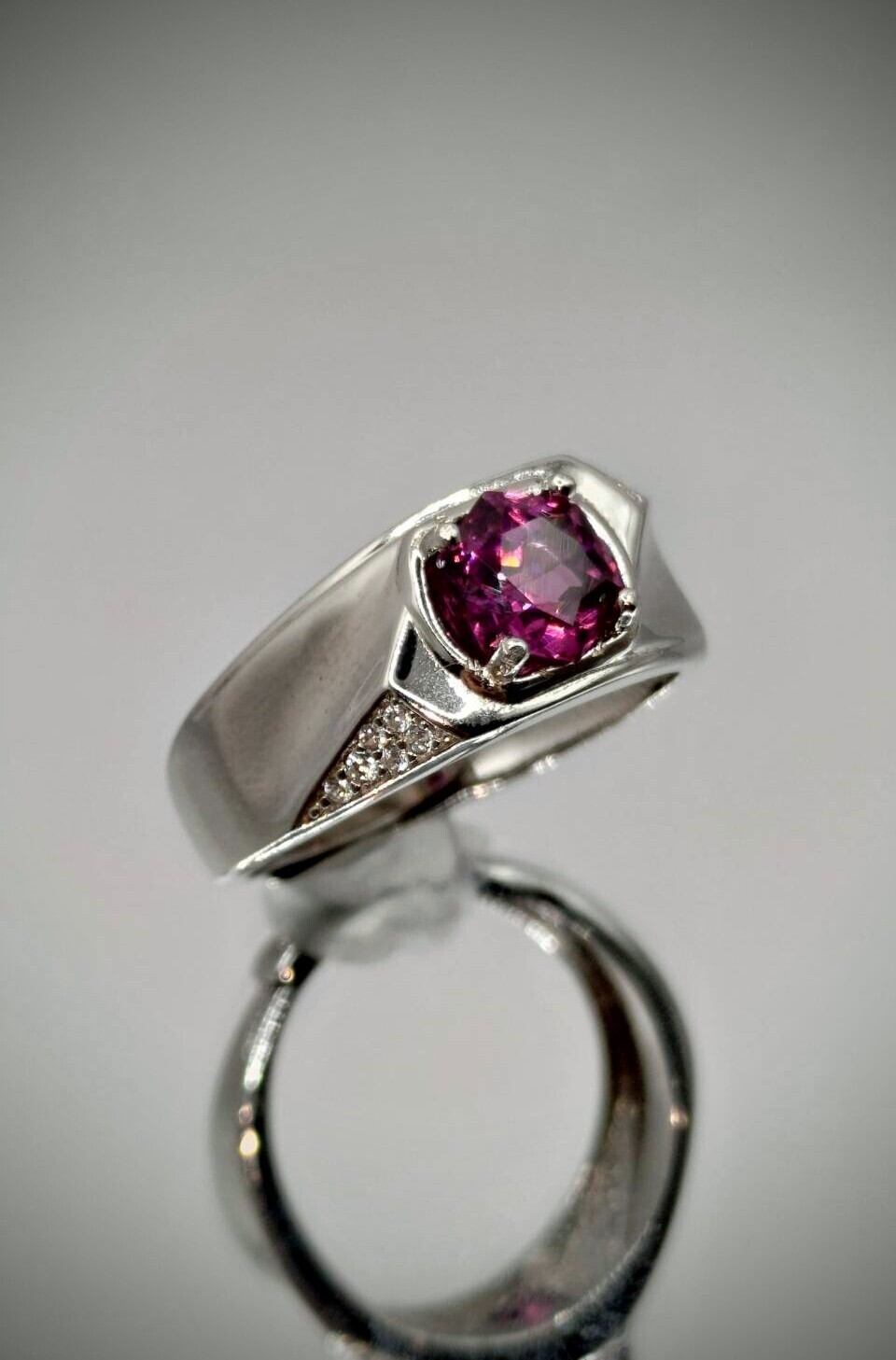 シルバー製 ロードライトガーネットのユニセックスリング。