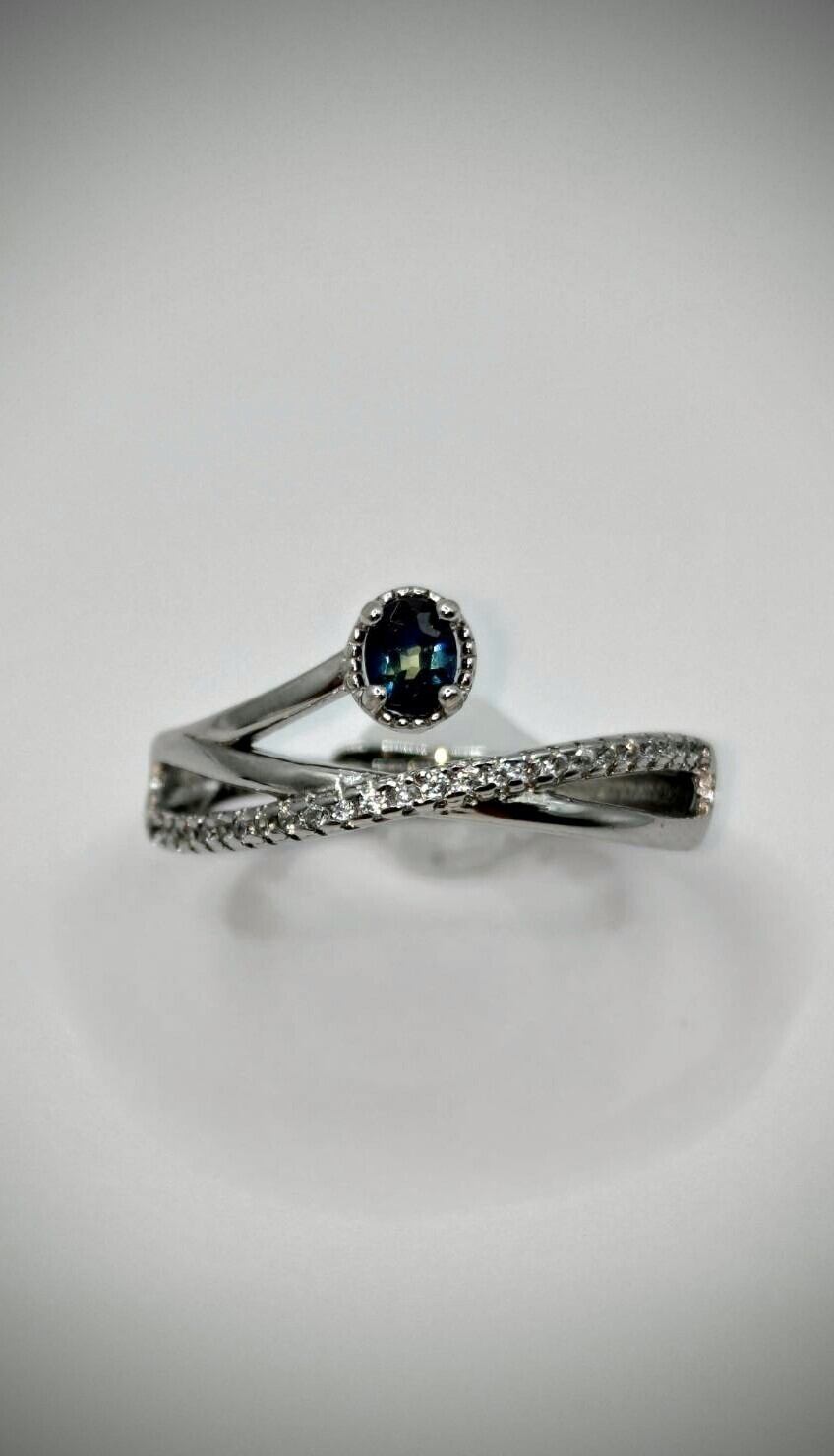 シルバー製 サファイア クロッシングデザインリング 9月誕生石 9号以上での使用推奨