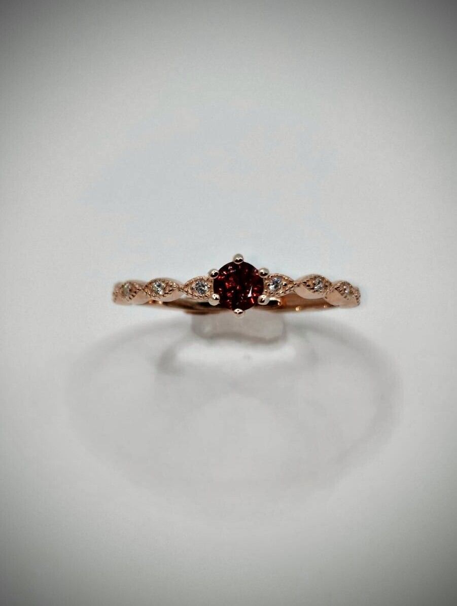 真っ赤なガーネットが美しく、。ピンクゴールドカラーと相性良く、とても映えます。