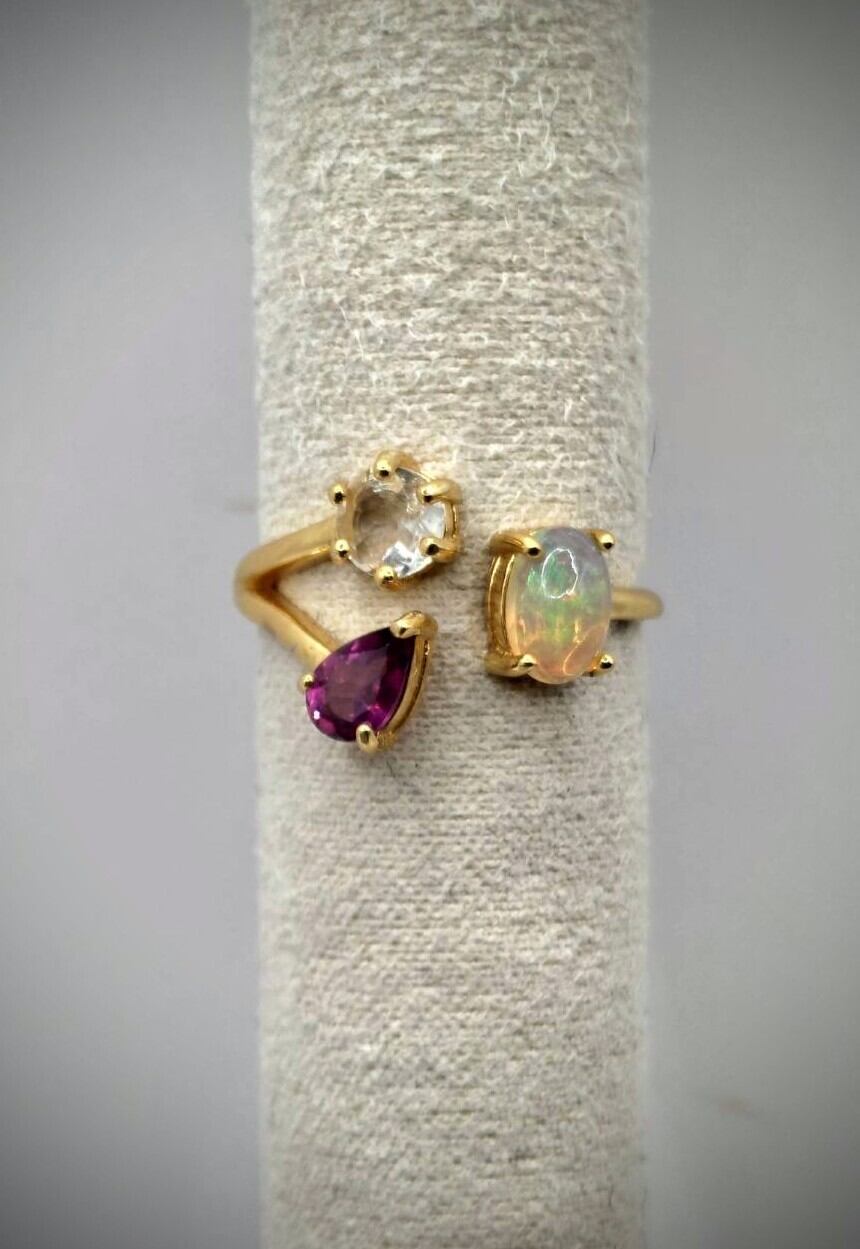 シルバー製ゴールドカラー マルチストーンリング。