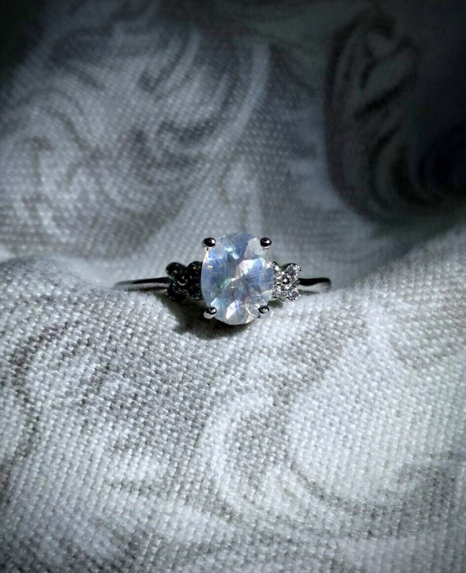 シルバー製 レインボームーンストーンリング。