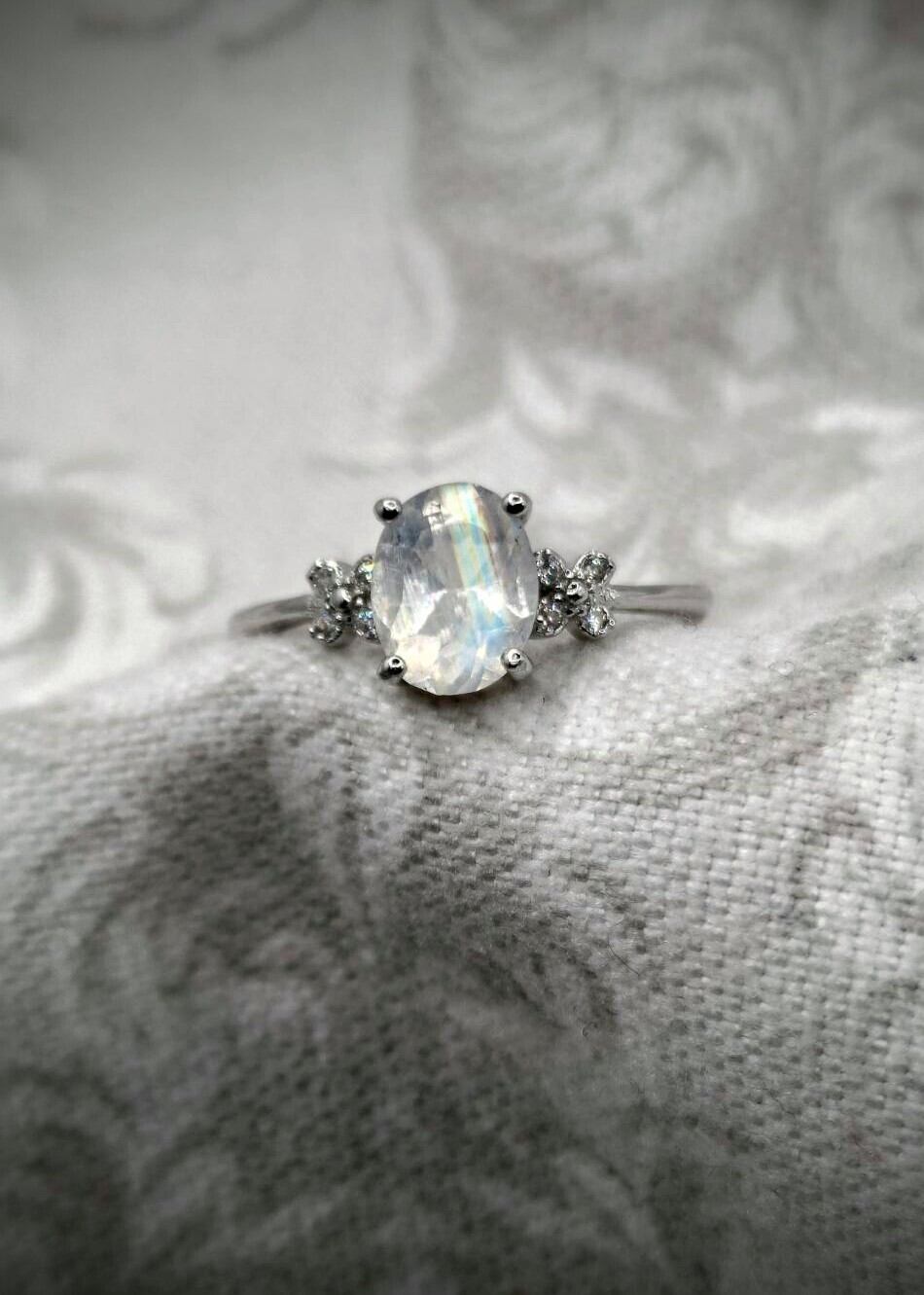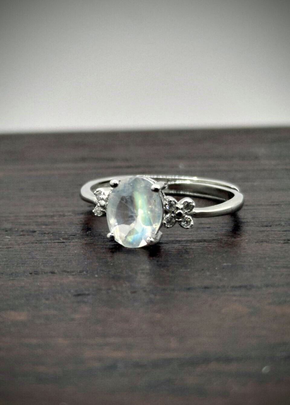 シルバー製 レインボームーンストーンリング フリーサイズ