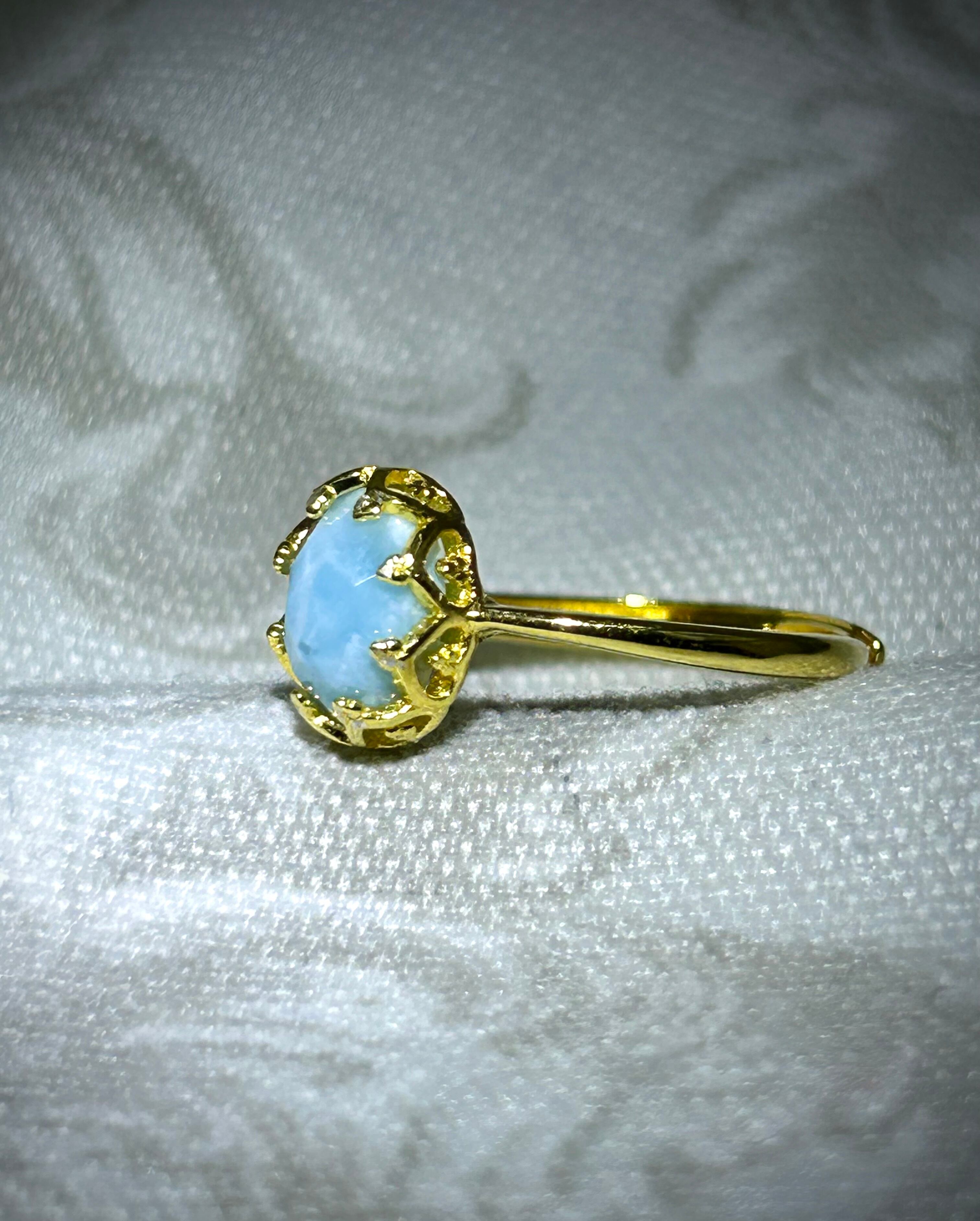 シルバー製ゴールドカラー ラリマーのクラウンリング。