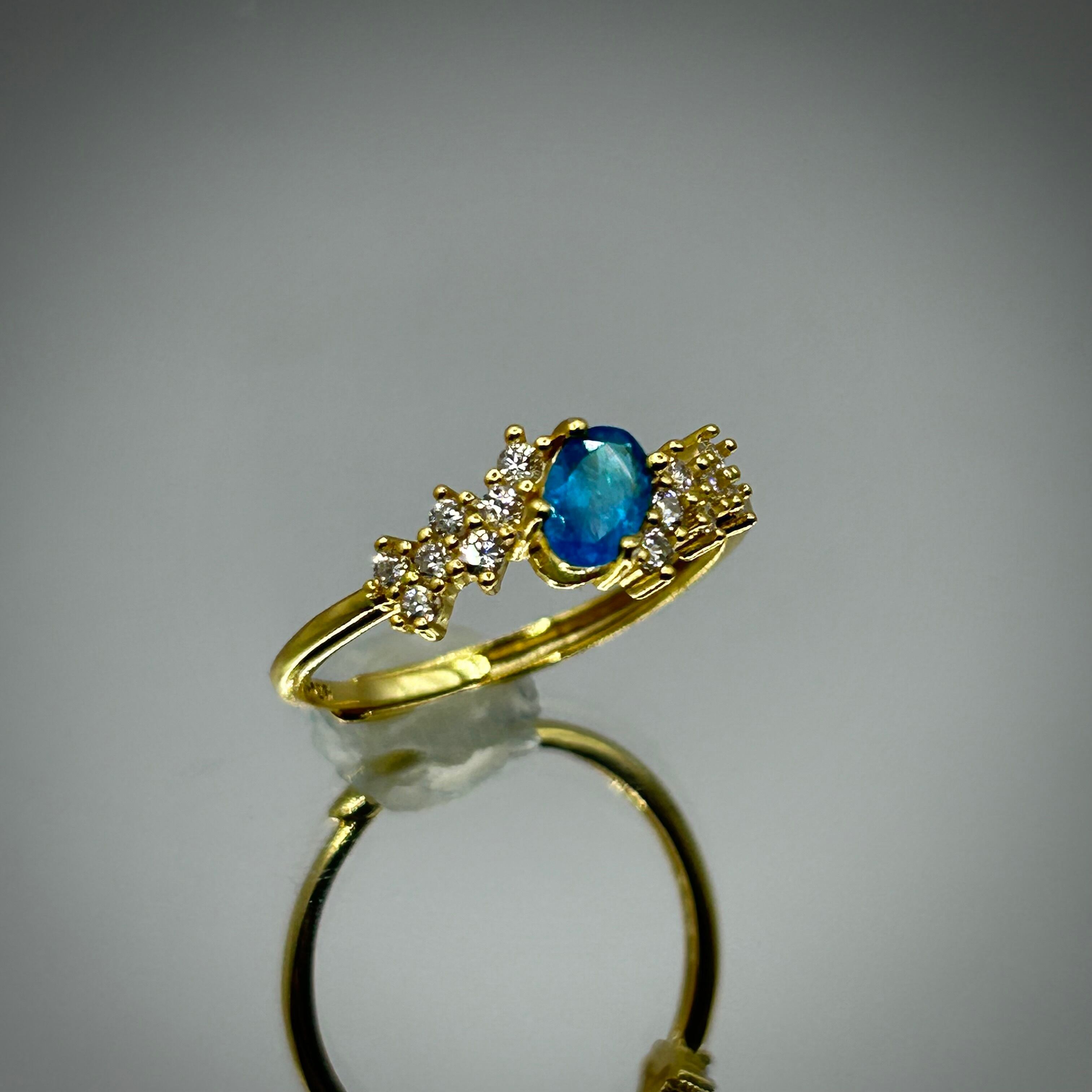 ゴールドカラーに映えるブルーが目を引くリングです。