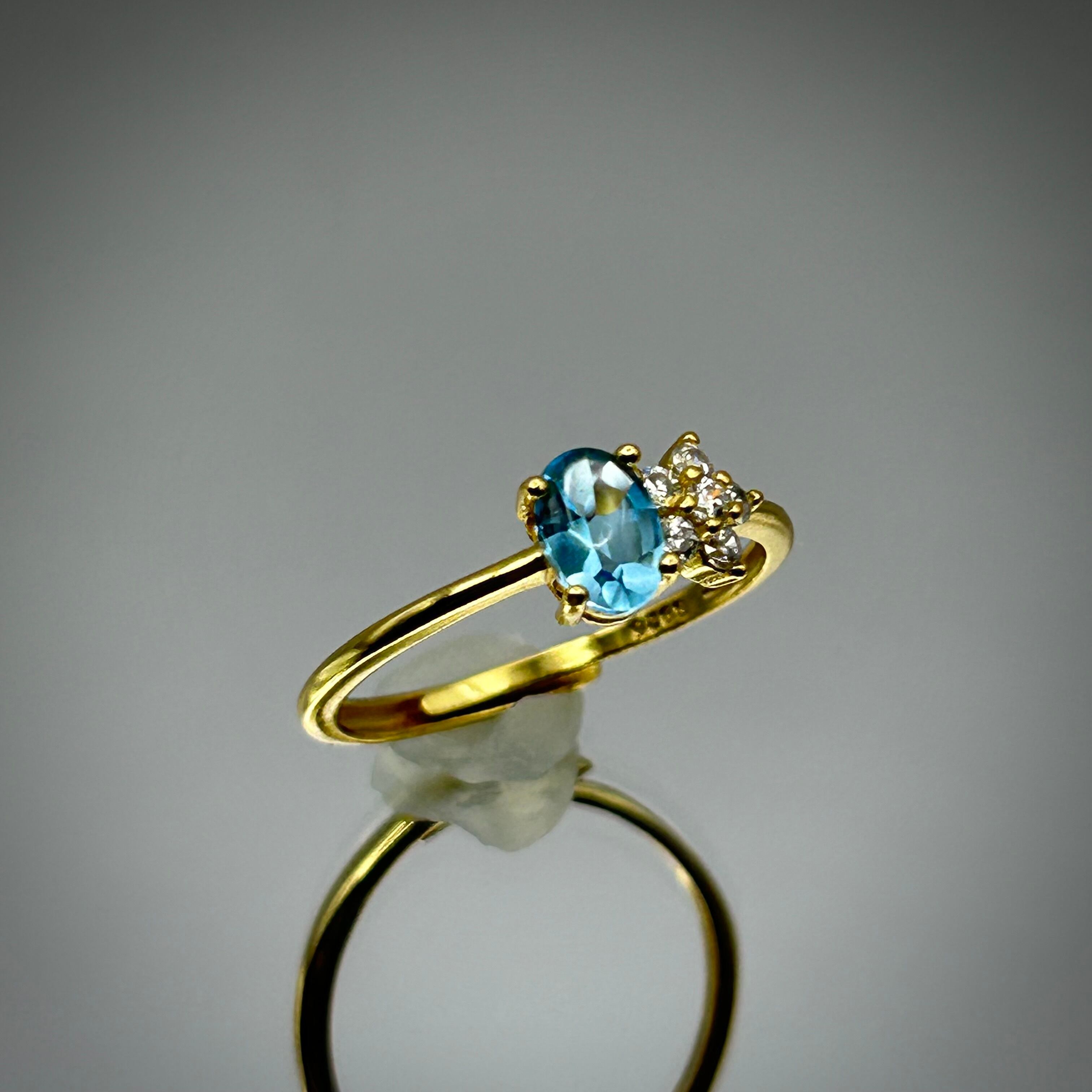 ゴールドカラーに爽やかなブルーカラーが映えるリング。