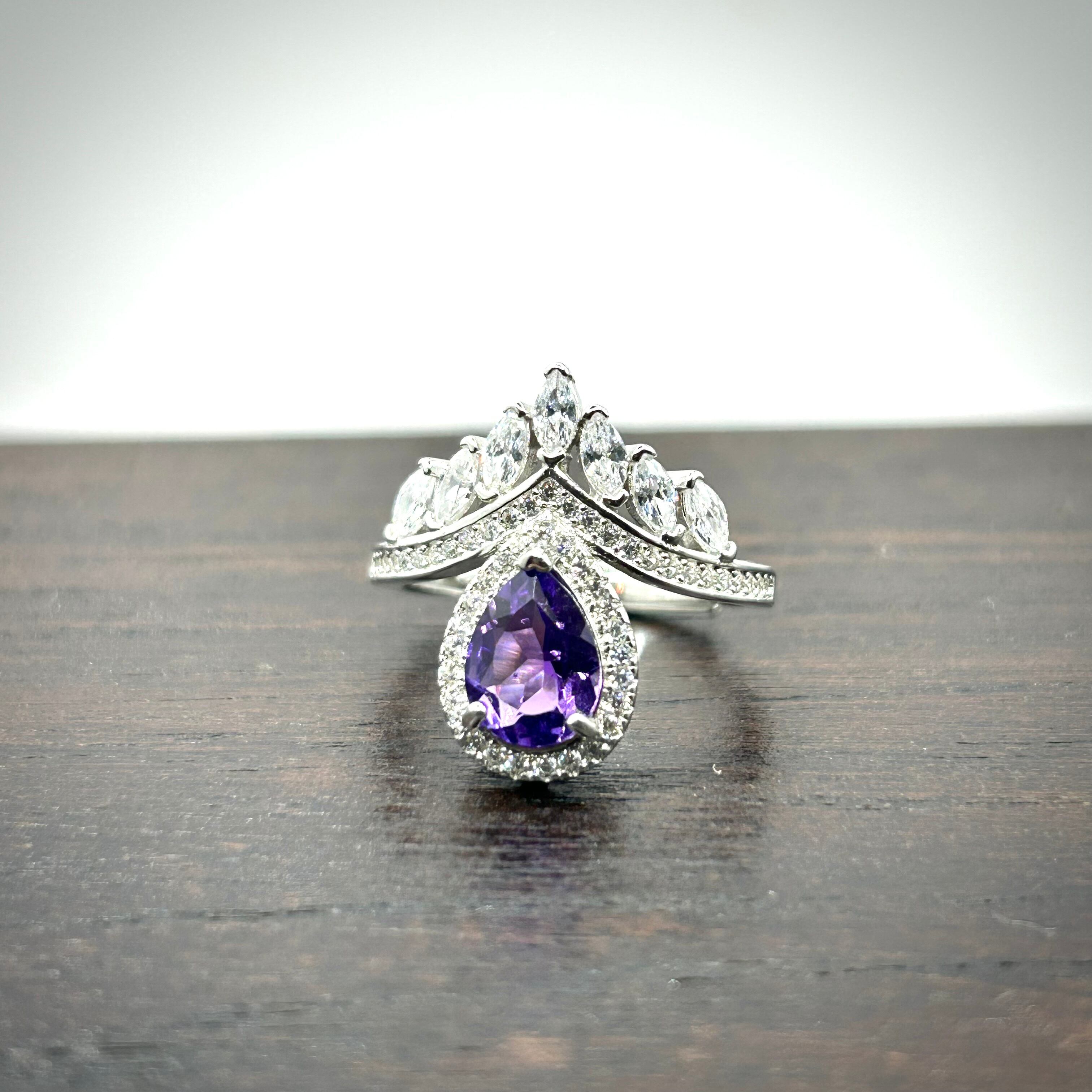シルバー製 アメシスト ドロップティアラリング 2月誕生石 12号以上での使用推奨