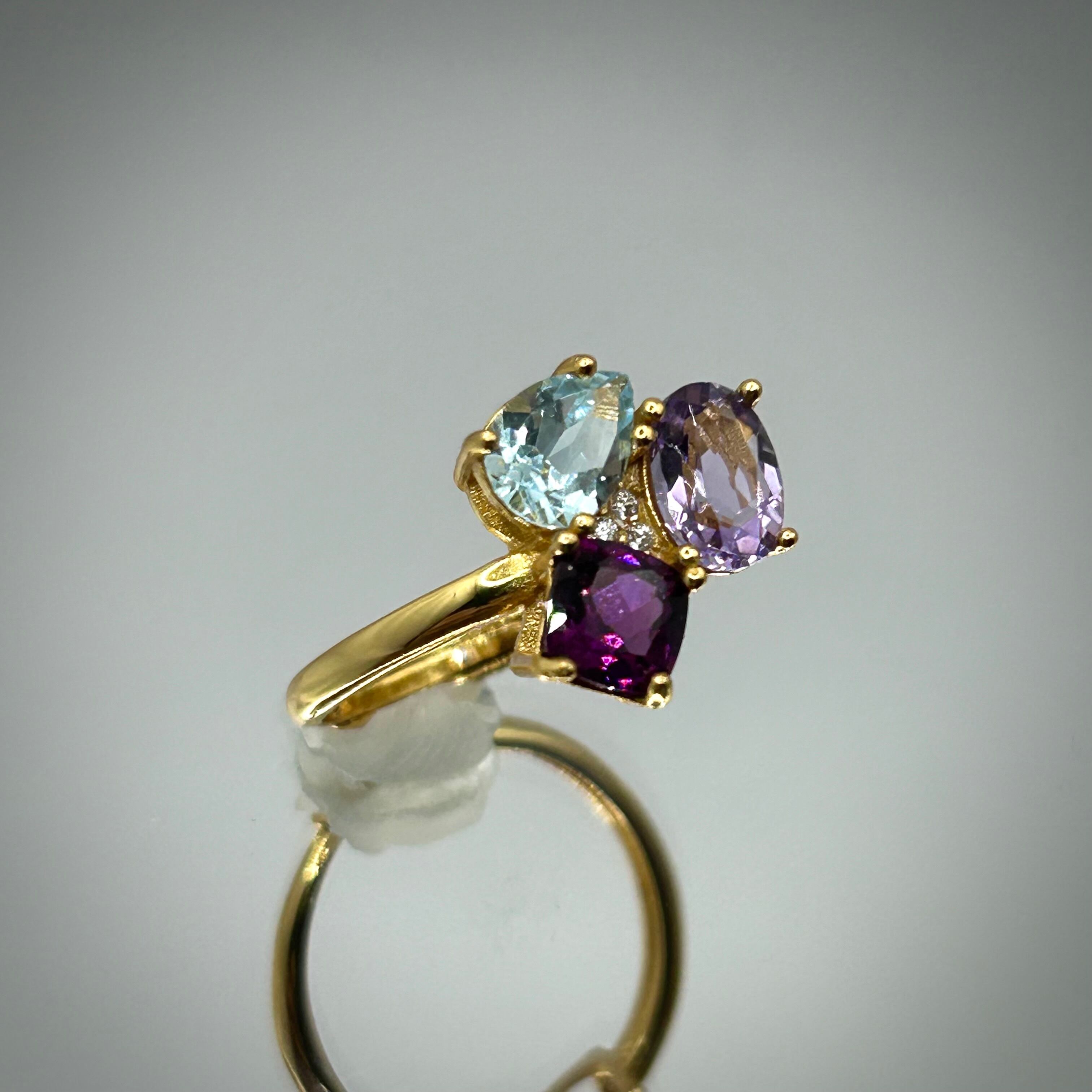 ロードライトガーネット・アメシスト・ブルートパーズと3種類の石を使用したマルチストーンリング。