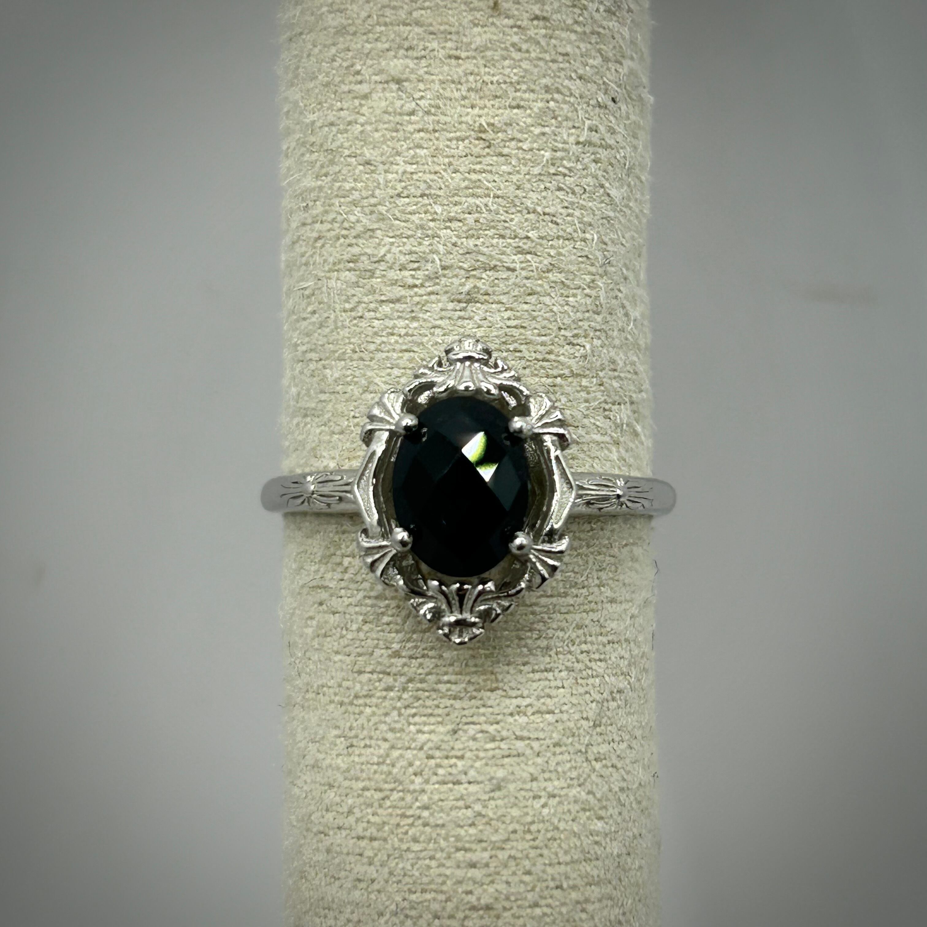 シルバー製 ローズカット オニキス ゴシック調リング フリーサイズ