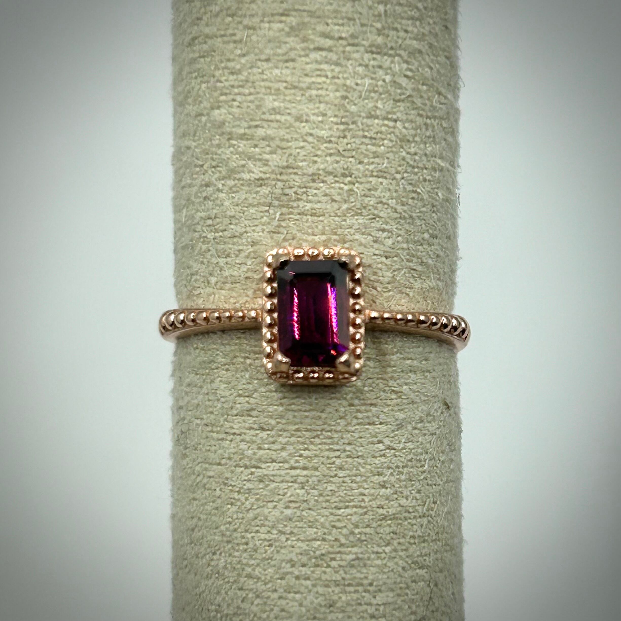 グレープカラーが美しいロードライトガーネットを使用したスクエアミルリング。