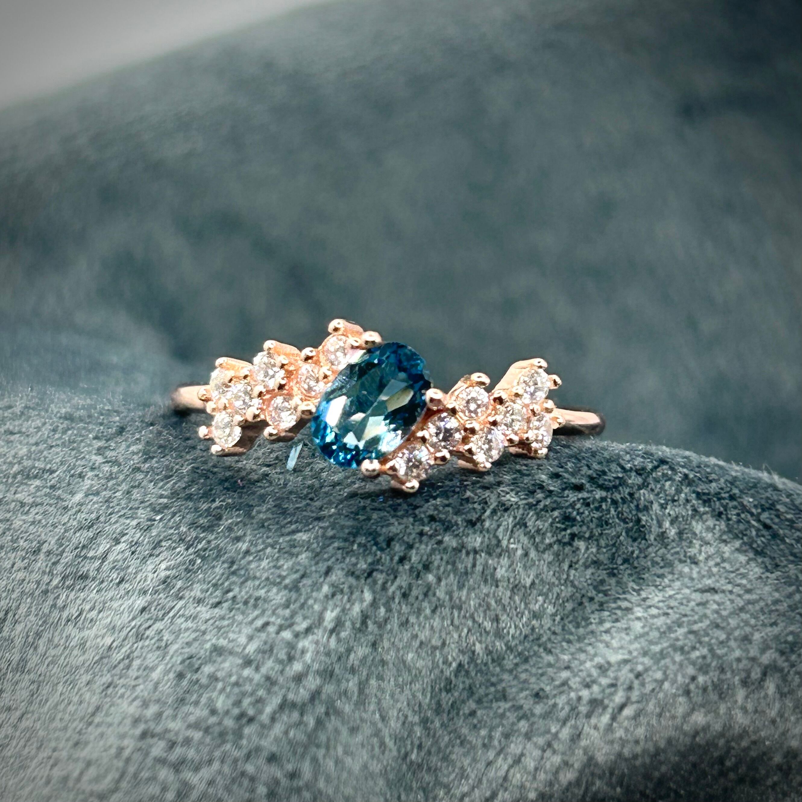 シルバー製ピンクゴールドカラー ロンドンブルートパーズのチルトリング。