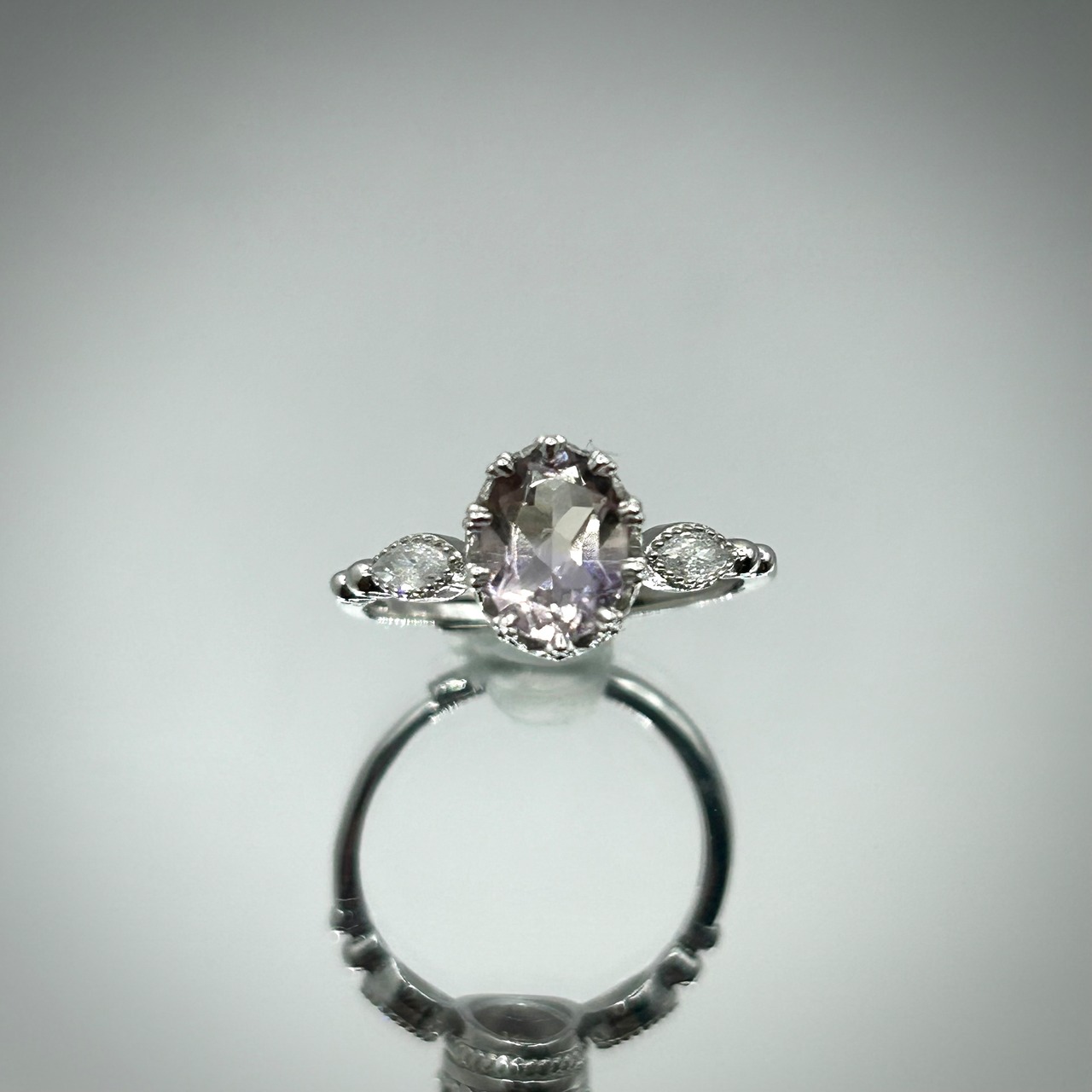 クラウンデザインに脇石のマーキスカットやミル打ちがクラシカルな雰囲気たっぷり。