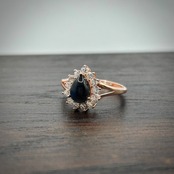 シルバー製ピンクゴールドカラー ブラックラブラドライトのペタルリング。