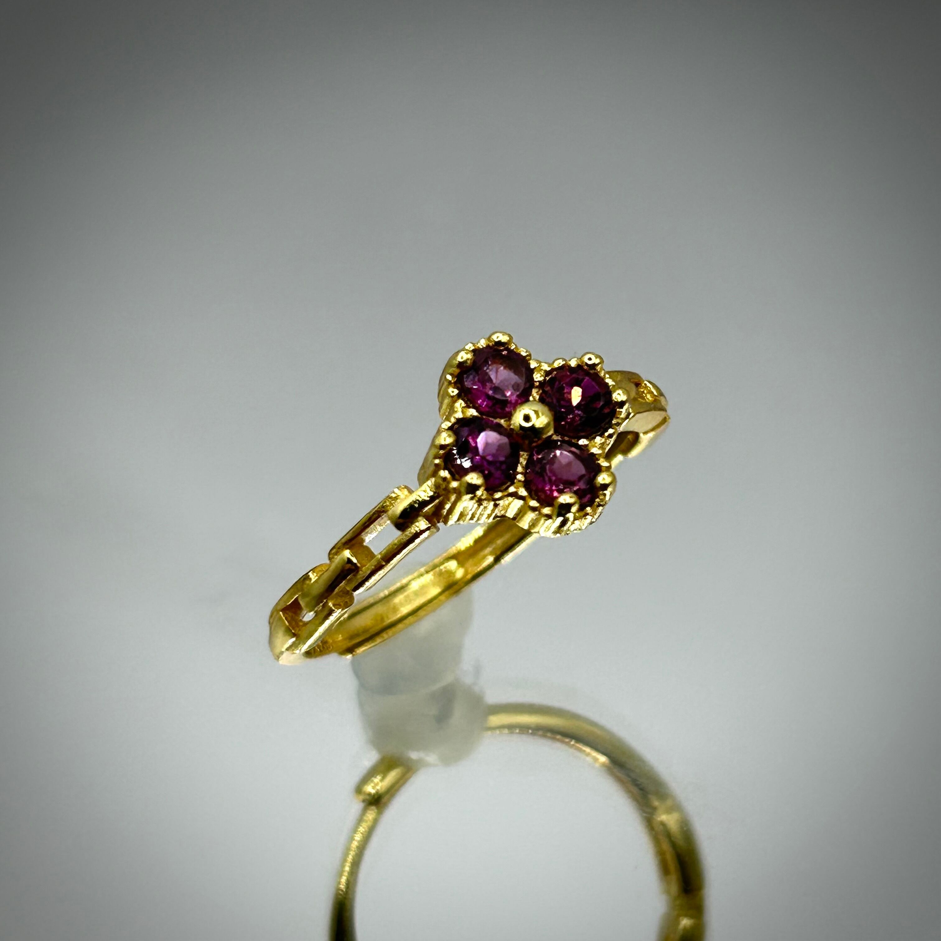 シルバー製ゴールドカラー ロードライトガーネット 4石チェーンデザインリング 1月誕生石 フリーサイズ