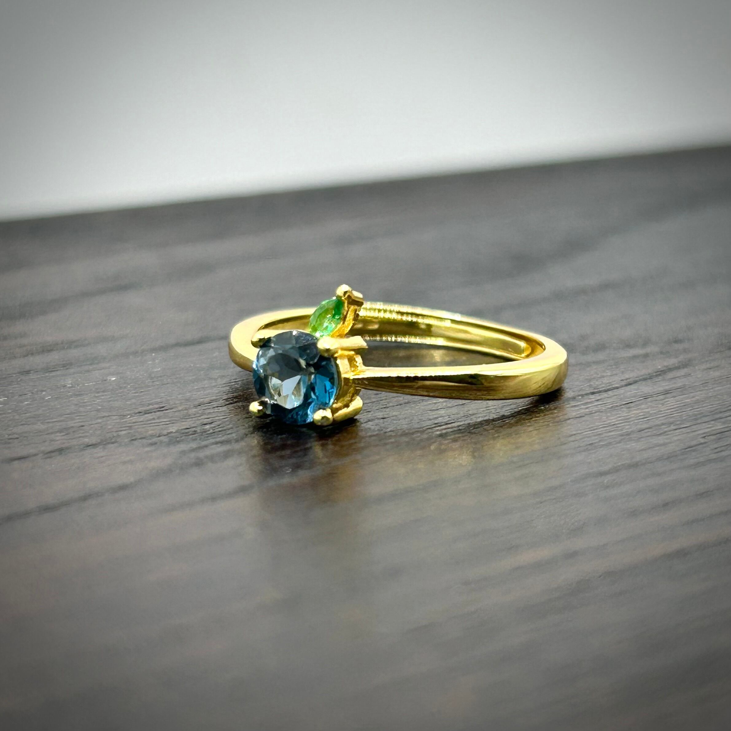 シルバー製ゴールドカラー、ロンドンブルートパーズのフルーツリング。