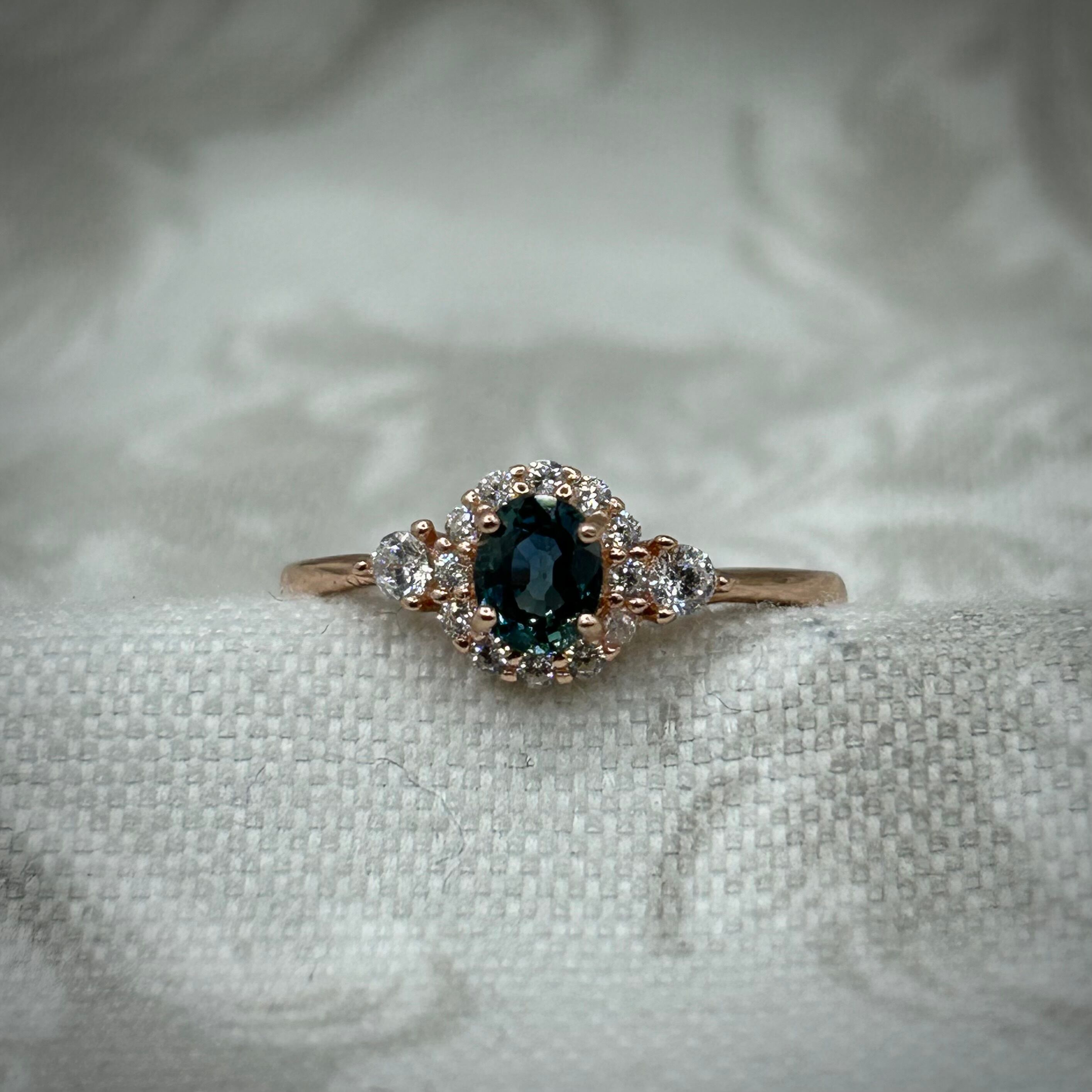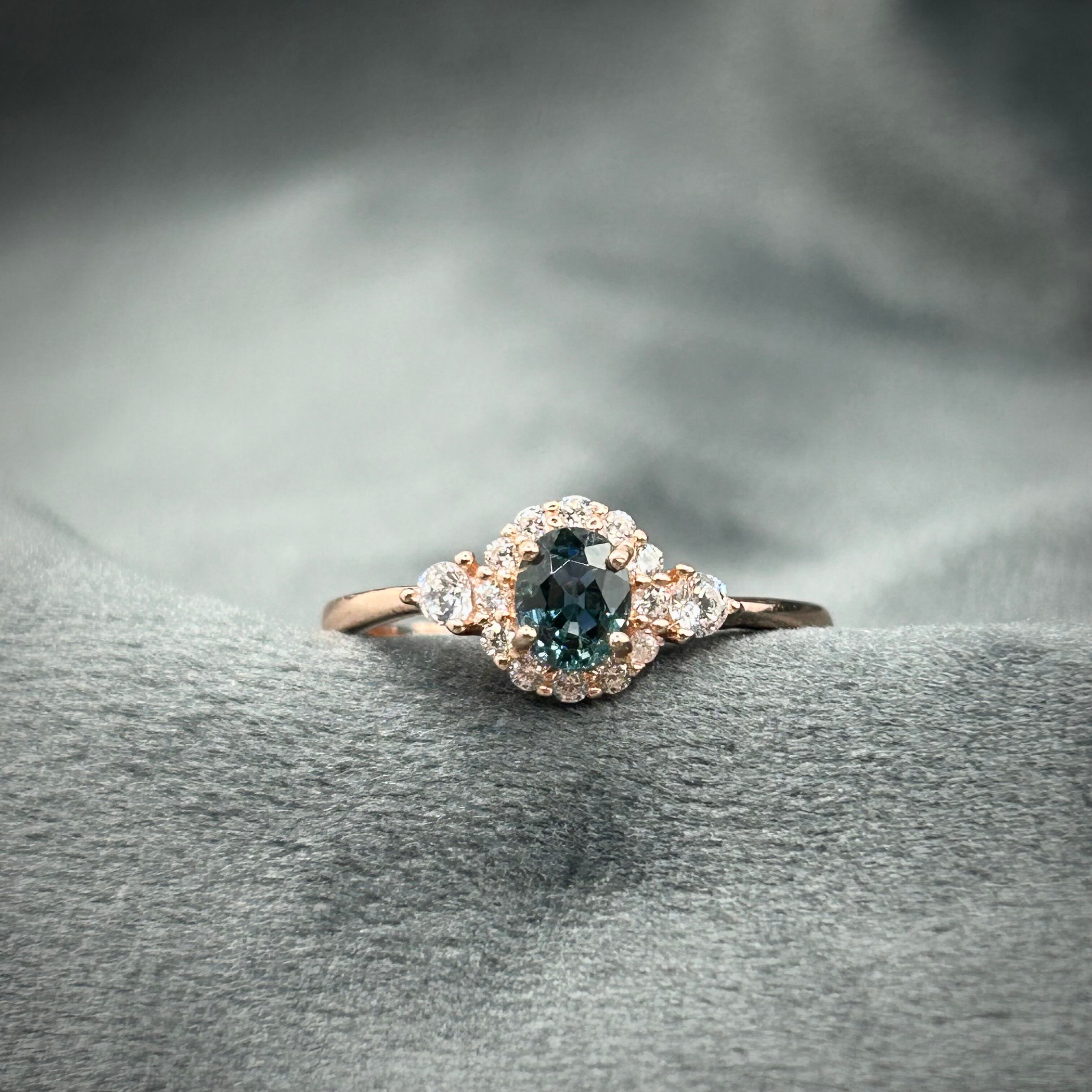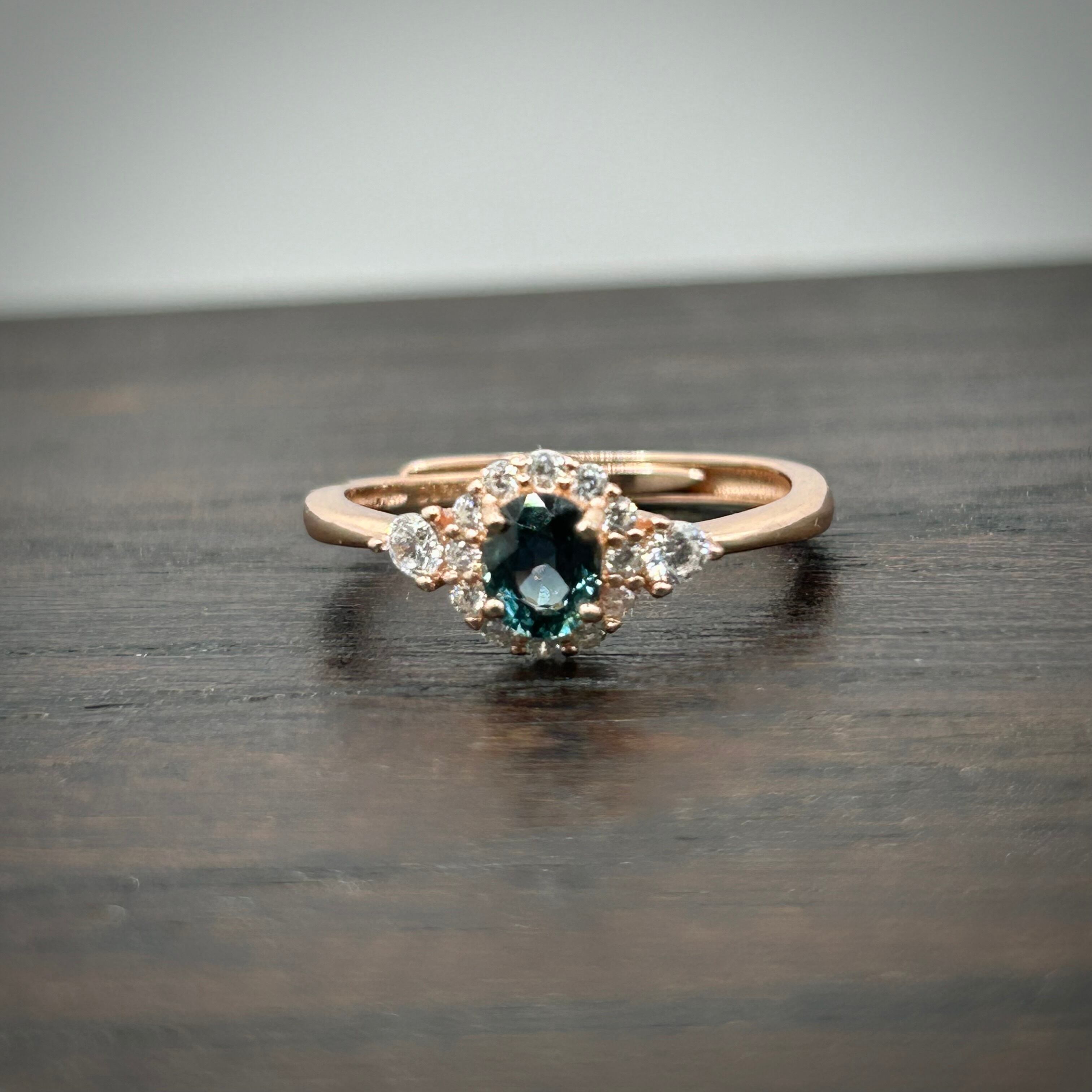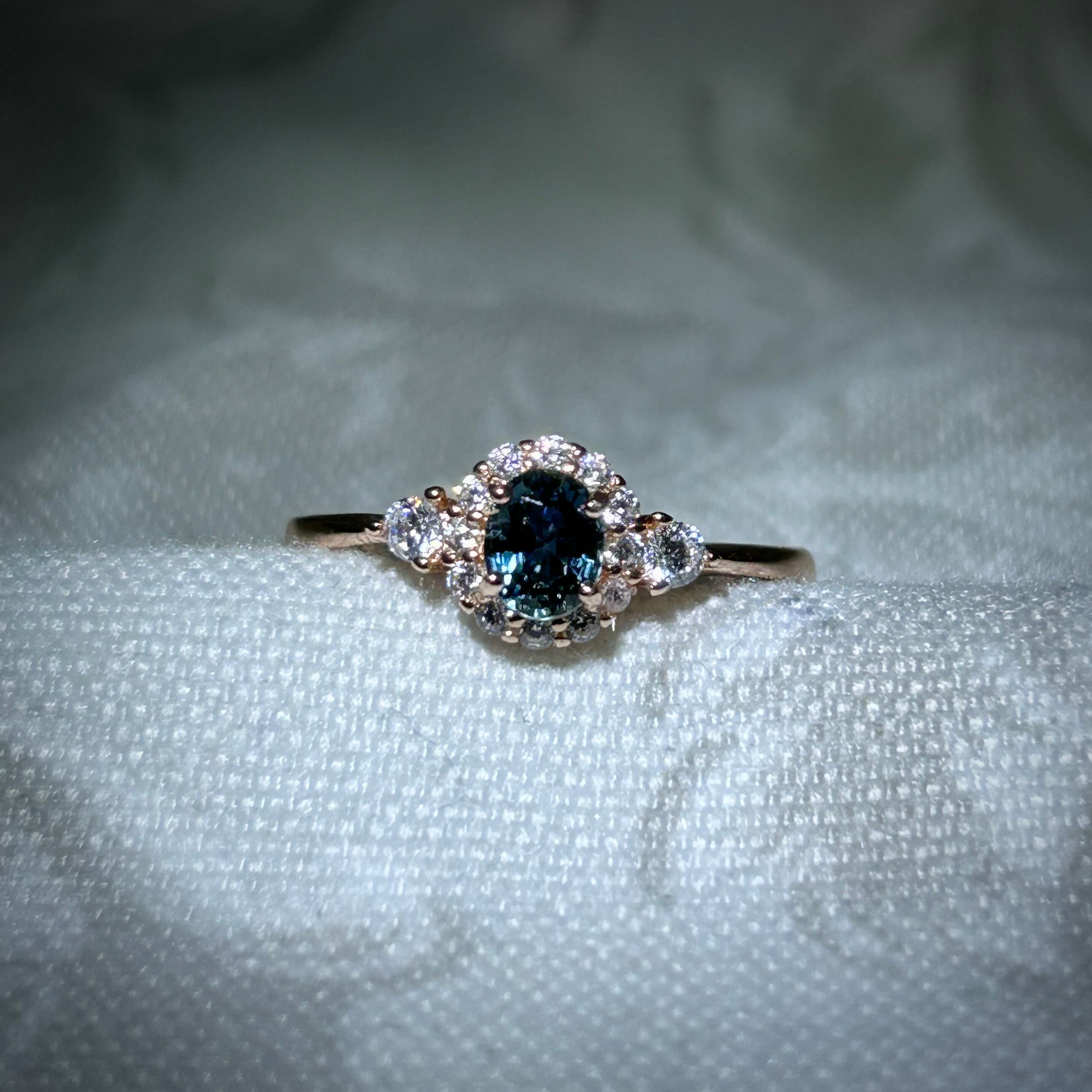 ブルーとグリーンを感じられる美しいティールカラーのサファイアを使用。