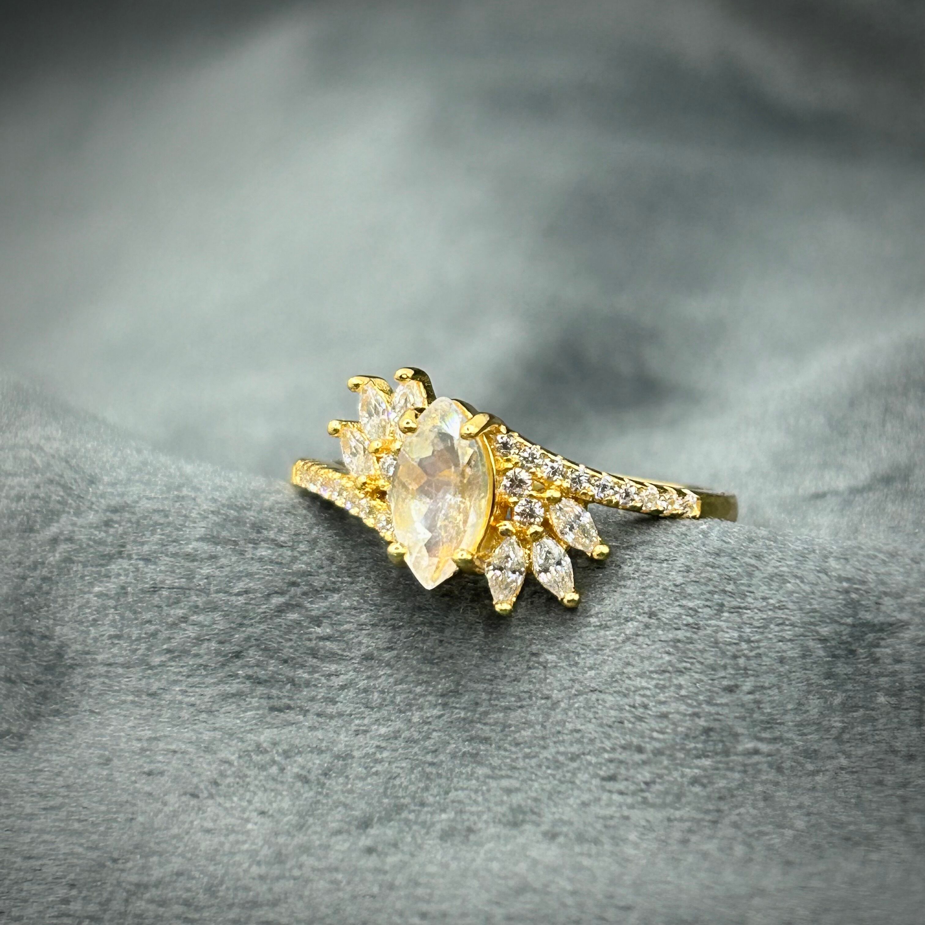 シルバー製ゴールドカラー アンデシンラブラドライト マーキスデザインリング フリーサイズ