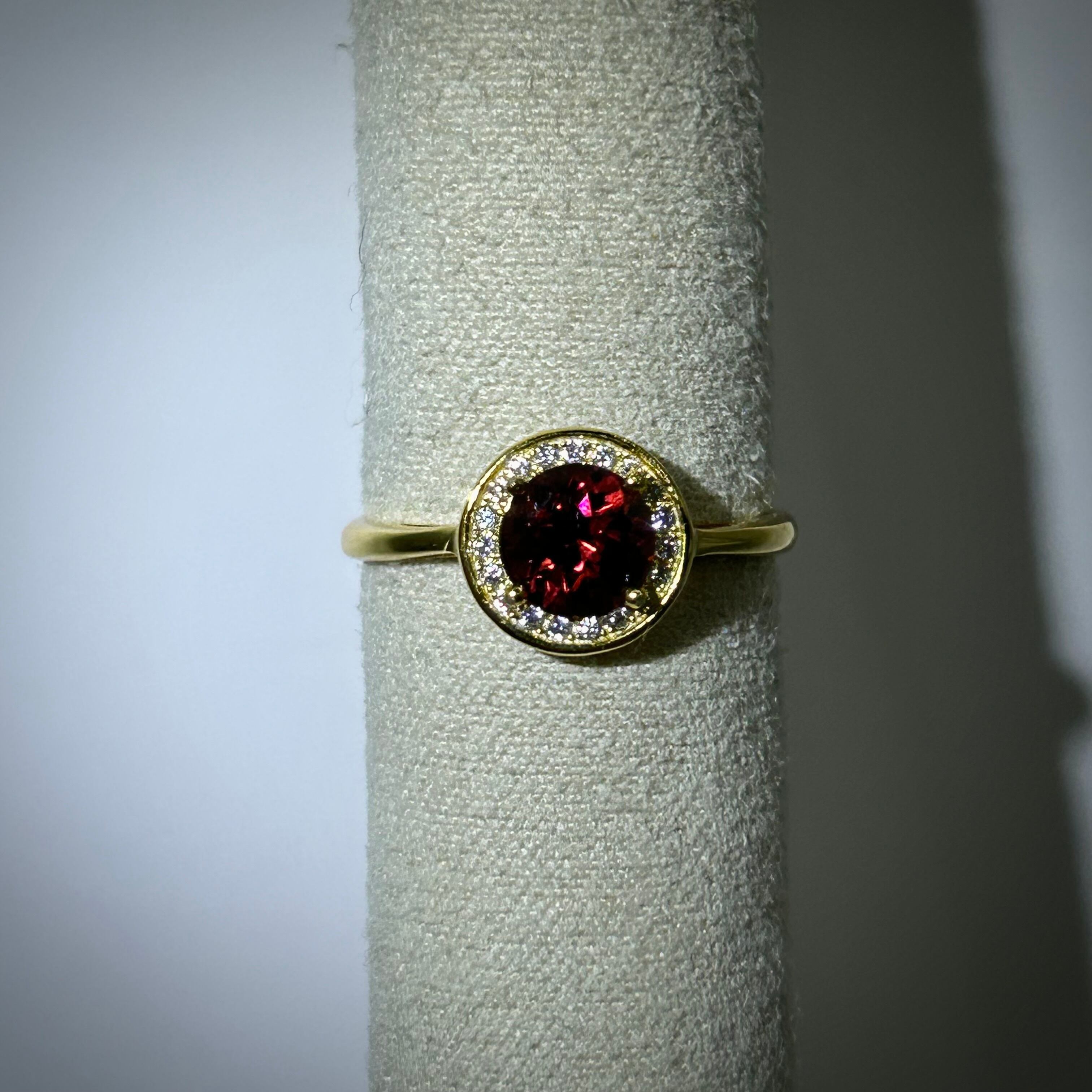 シンプルなラウンドデザインに美しいレッドカラーのガーネットを使用。