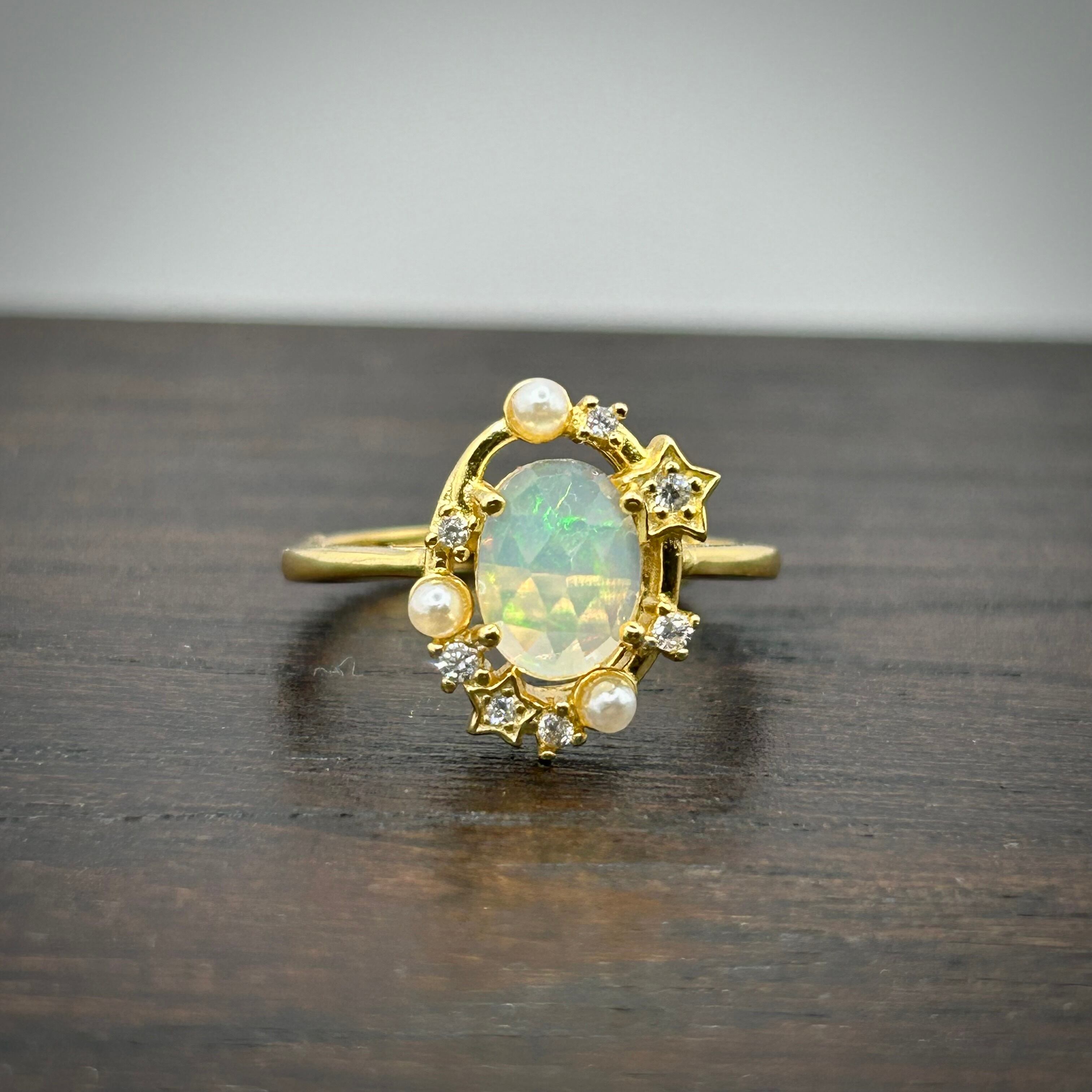 シルバー製ゴールドカラー ローズカット オパール パール&スターリング 10月誕生石 フリーサイズ