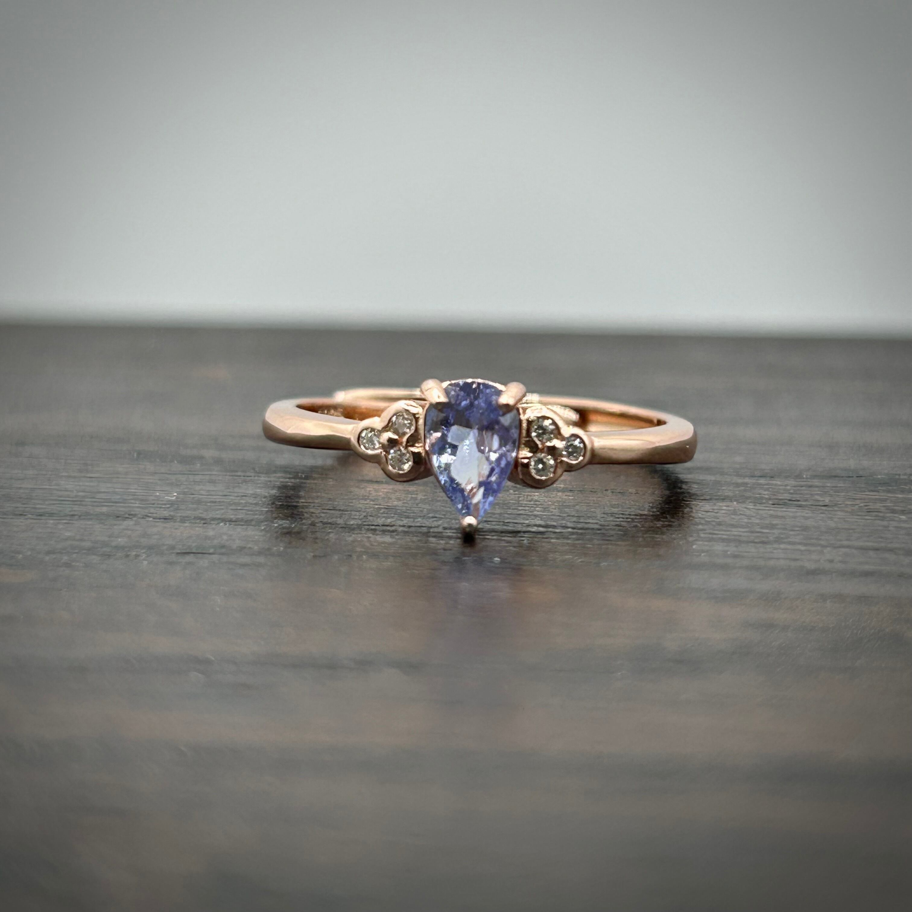 シルバー製ピンクゴールドカラー タンザナイトの雫リング。