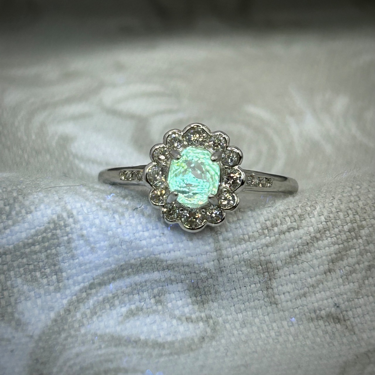 シルバー製 オイルインクォーツを使用したフラワーモチーフリング。