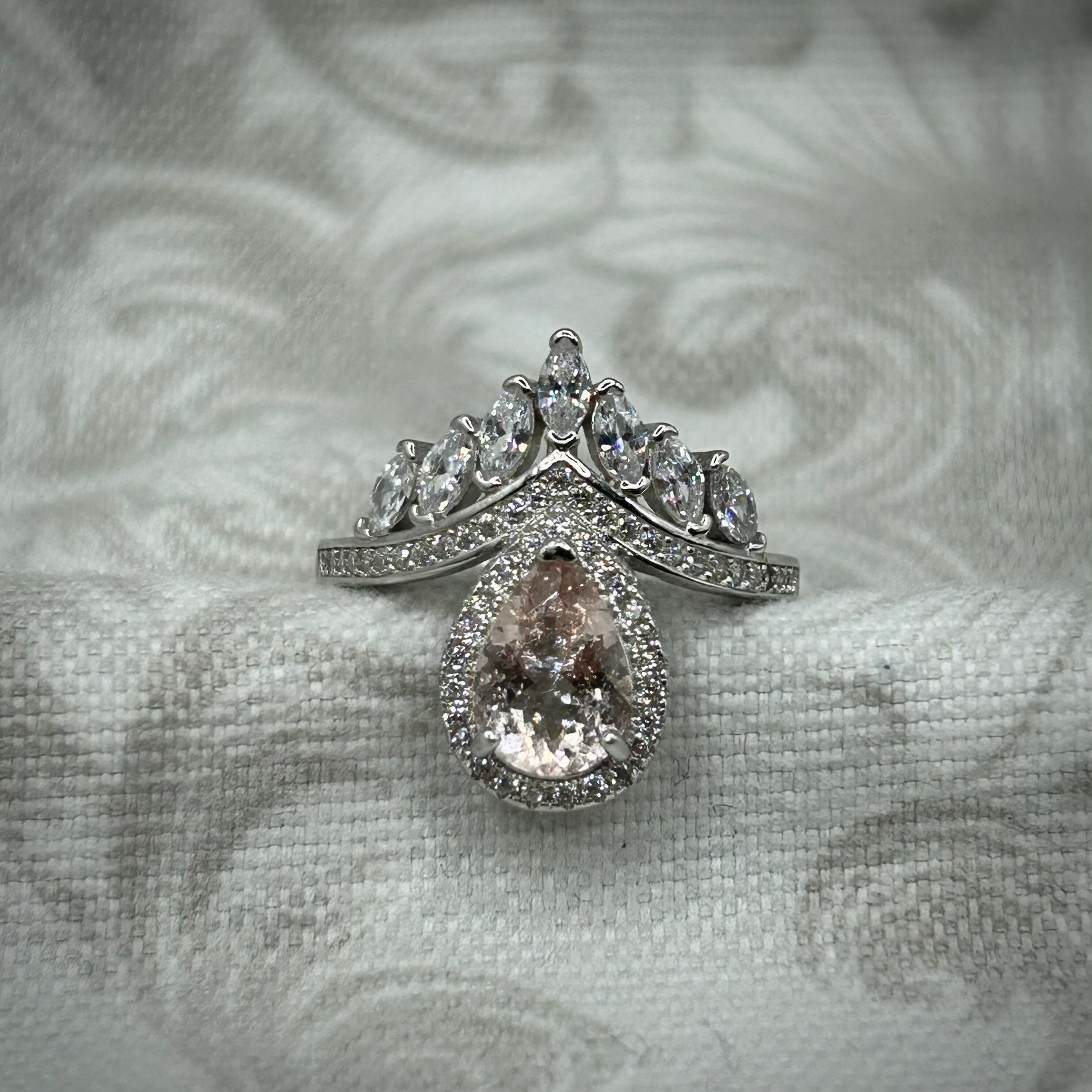 シルバー製 モルガナイト ドロップティアラリング 4月誕生石 12号以上での使用推奨