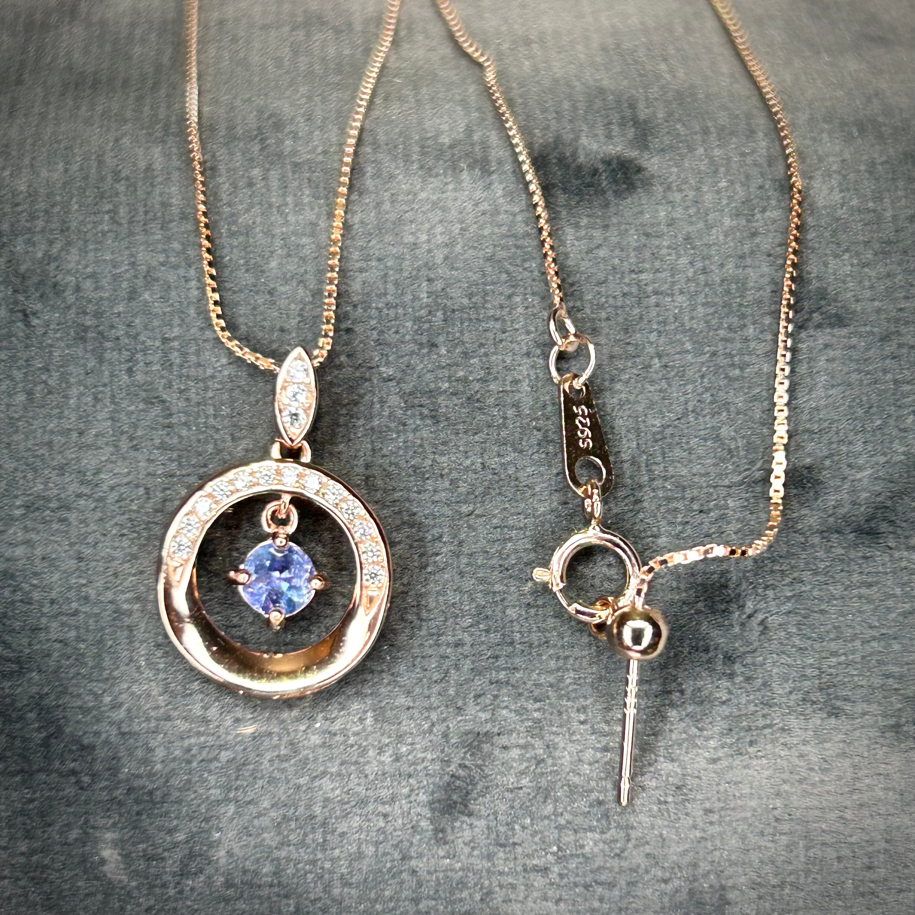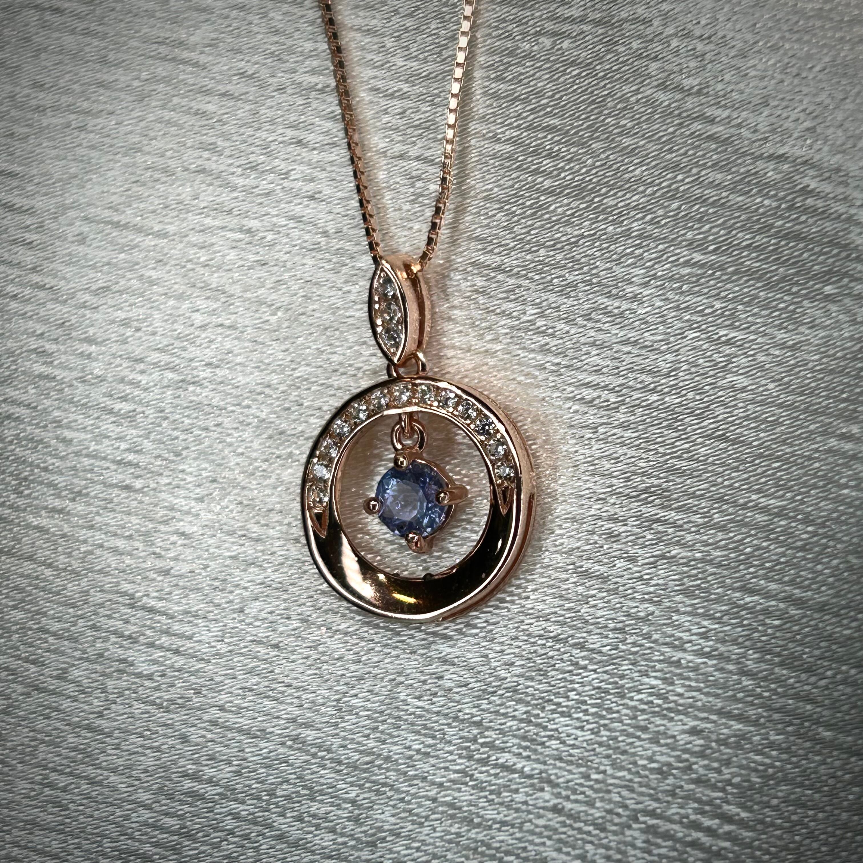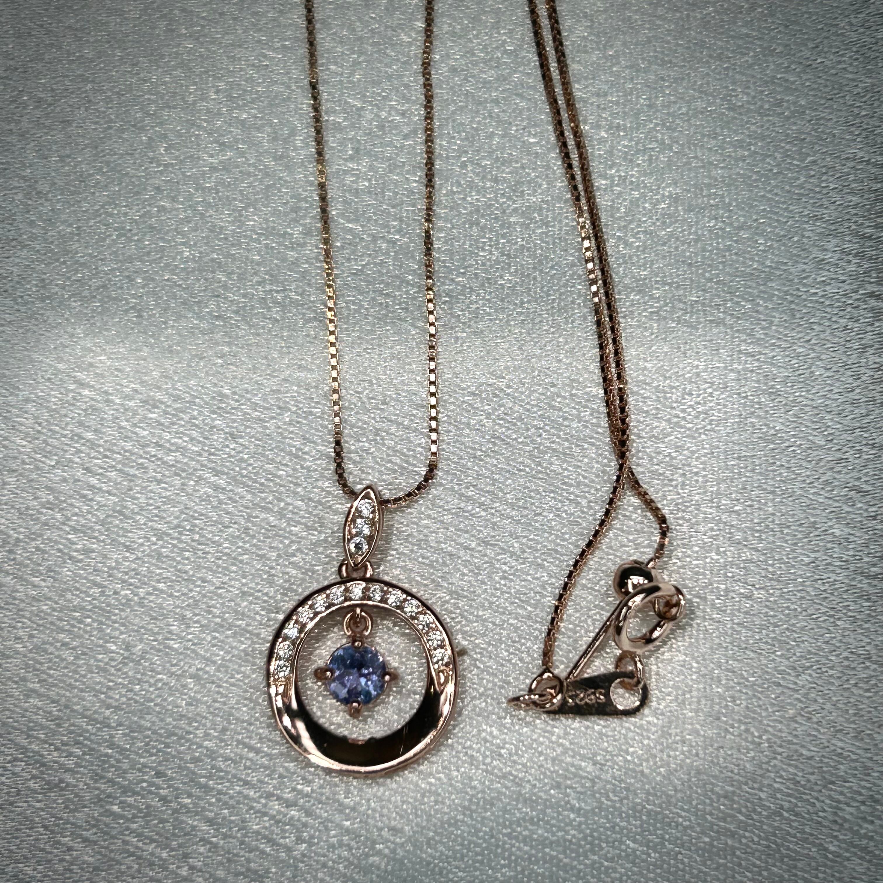 シルバー製ピンクゴールドカラー タンザナイトのスイングネックレス。。