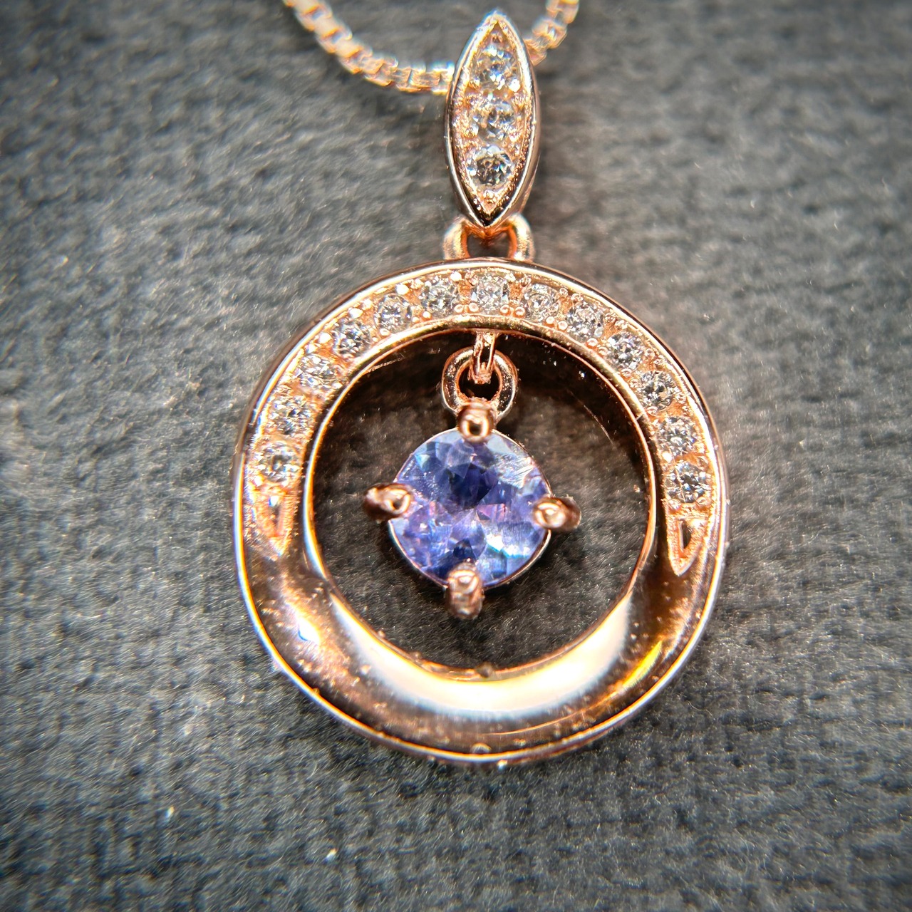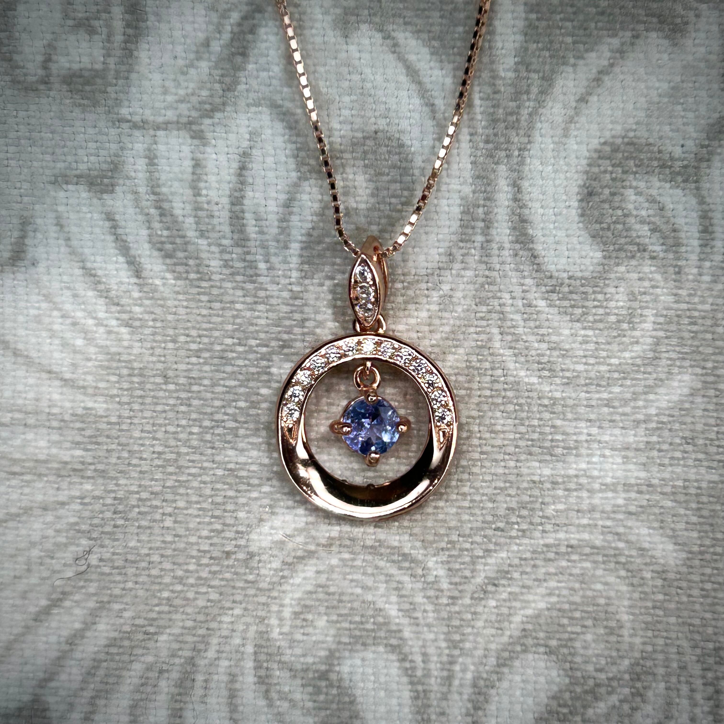 シルバー製ピンクゴールドカラー タンザナイト スイングネックレス 12月誕生石 シルバー製チェーン付き