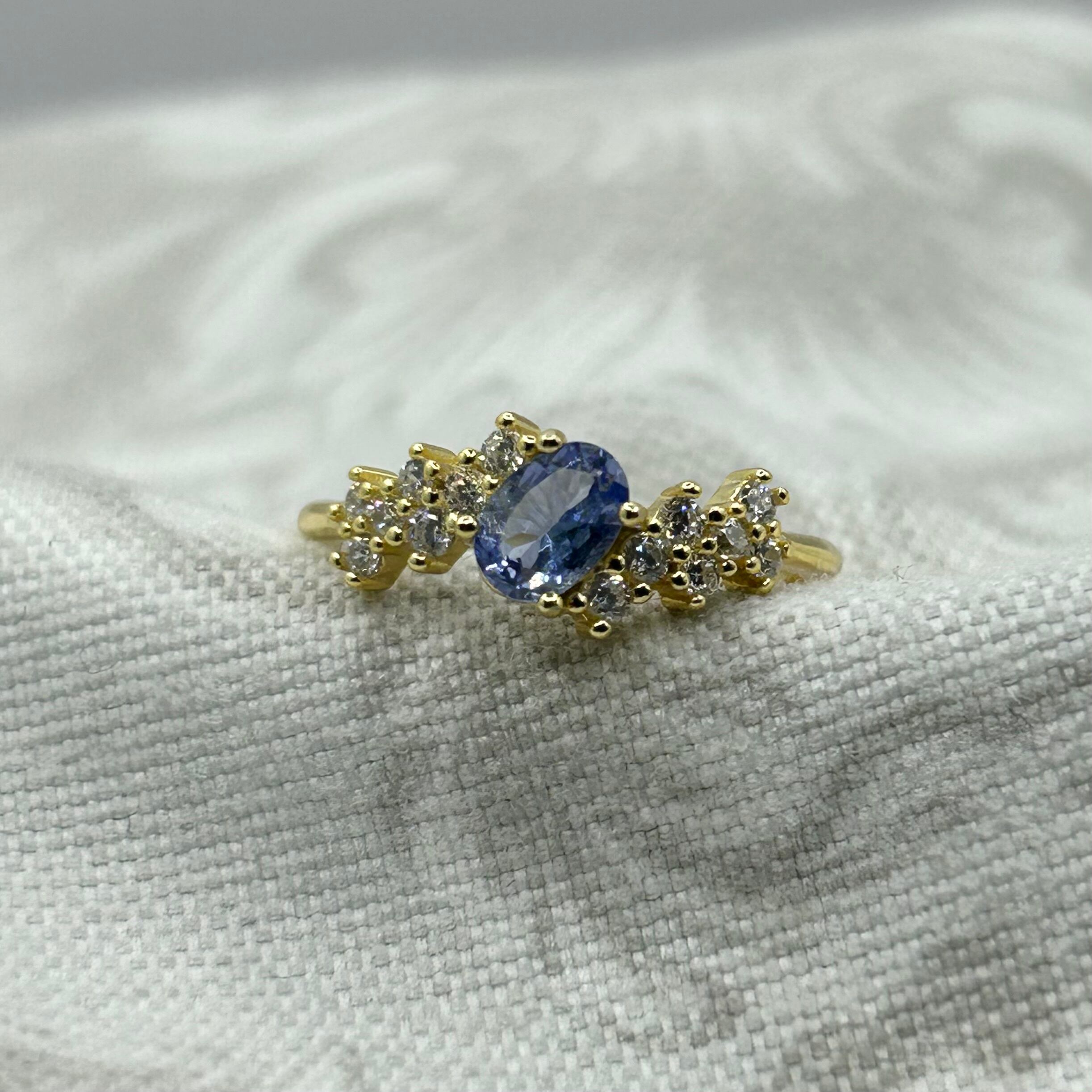 シルバー製ゴールドカラー タンザナイト チルトリング 12月誕生石 フリーサイズ