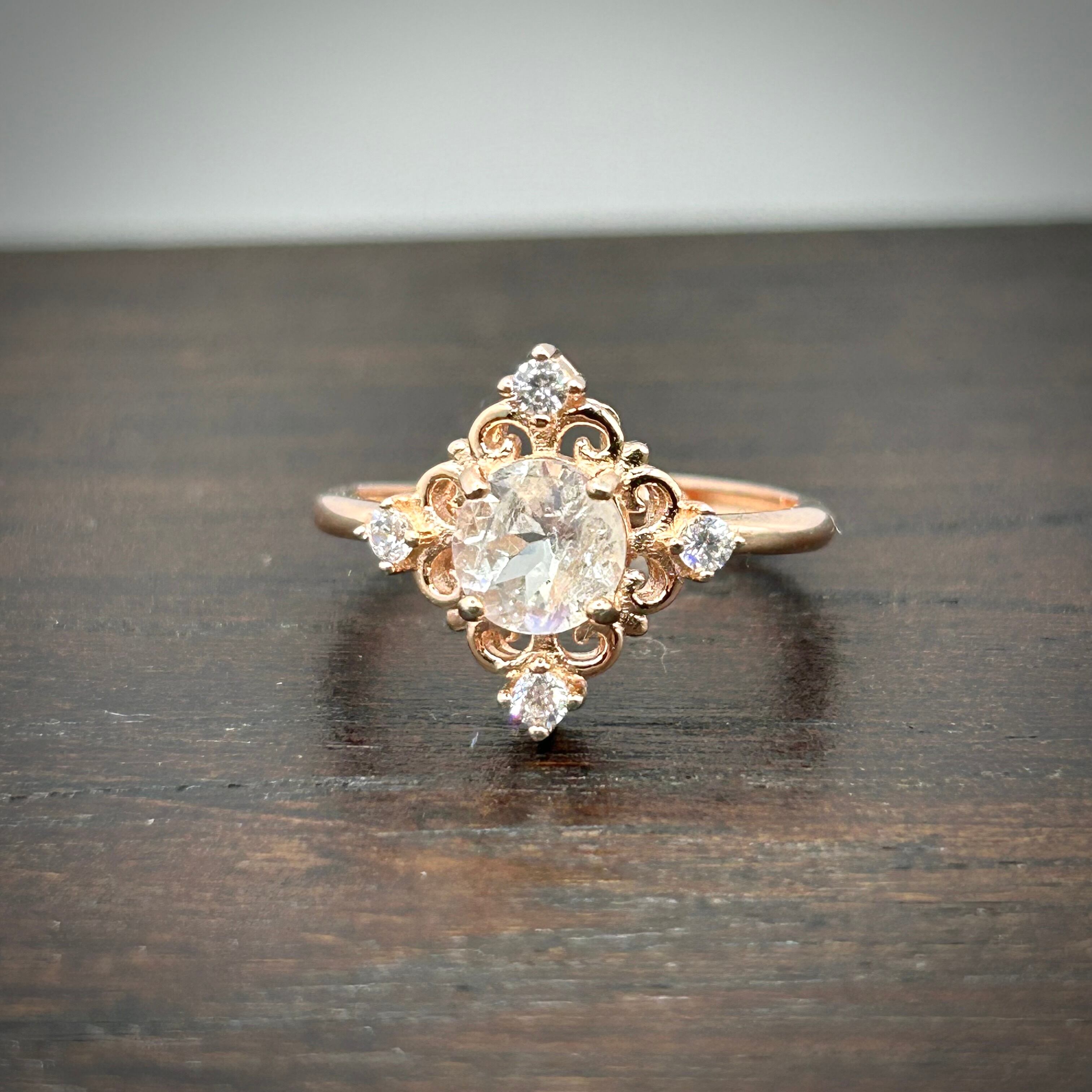 シルバー製ピンクゴールドカラー アンデシンラブラドライトを使用したアンティークデザインリング。