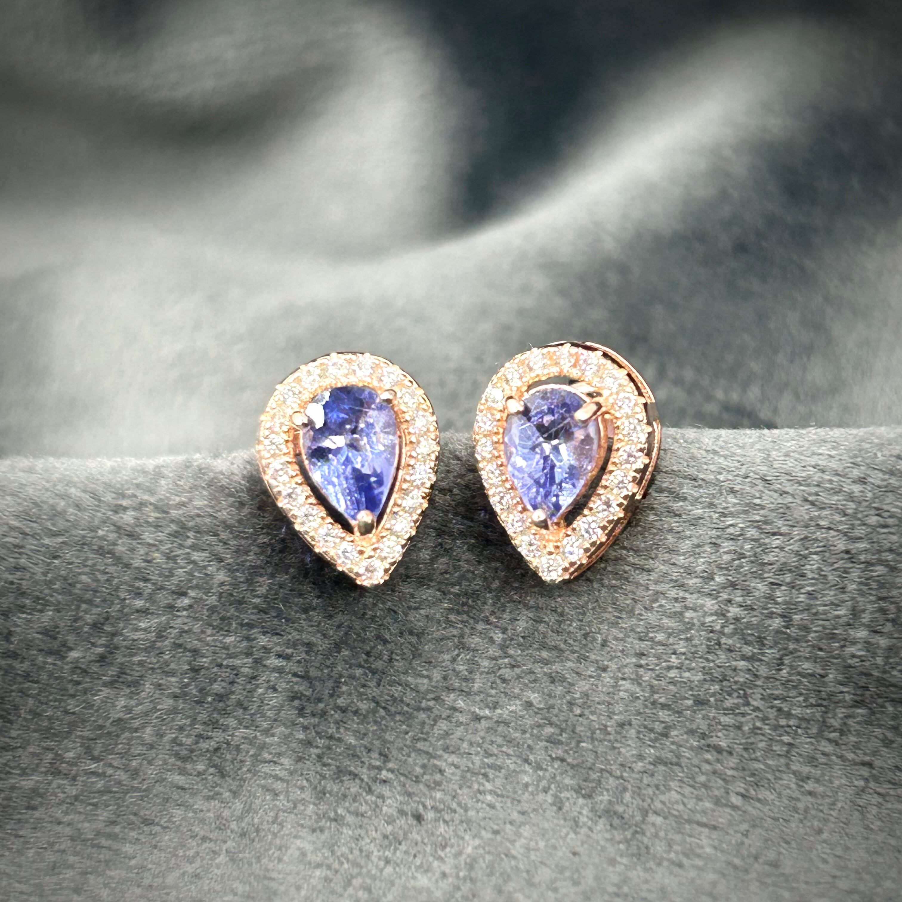 シルバー製ピンクゴールドカラー タンザナイト ドロップ型ピアス 12月誕生石 1ペア