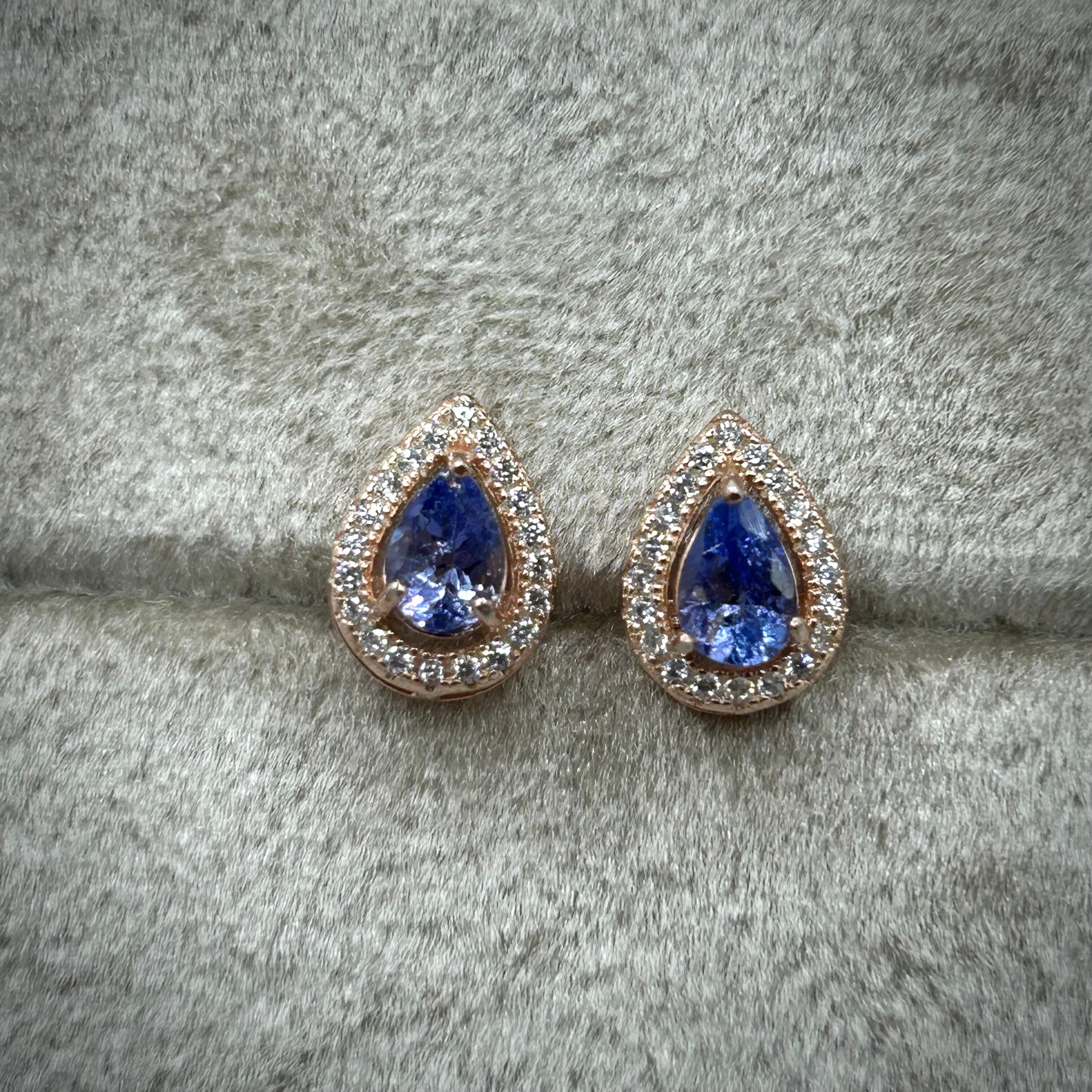 シルバー製ピンクゴールドカラー タンザナイトのドロップ型ピアス。