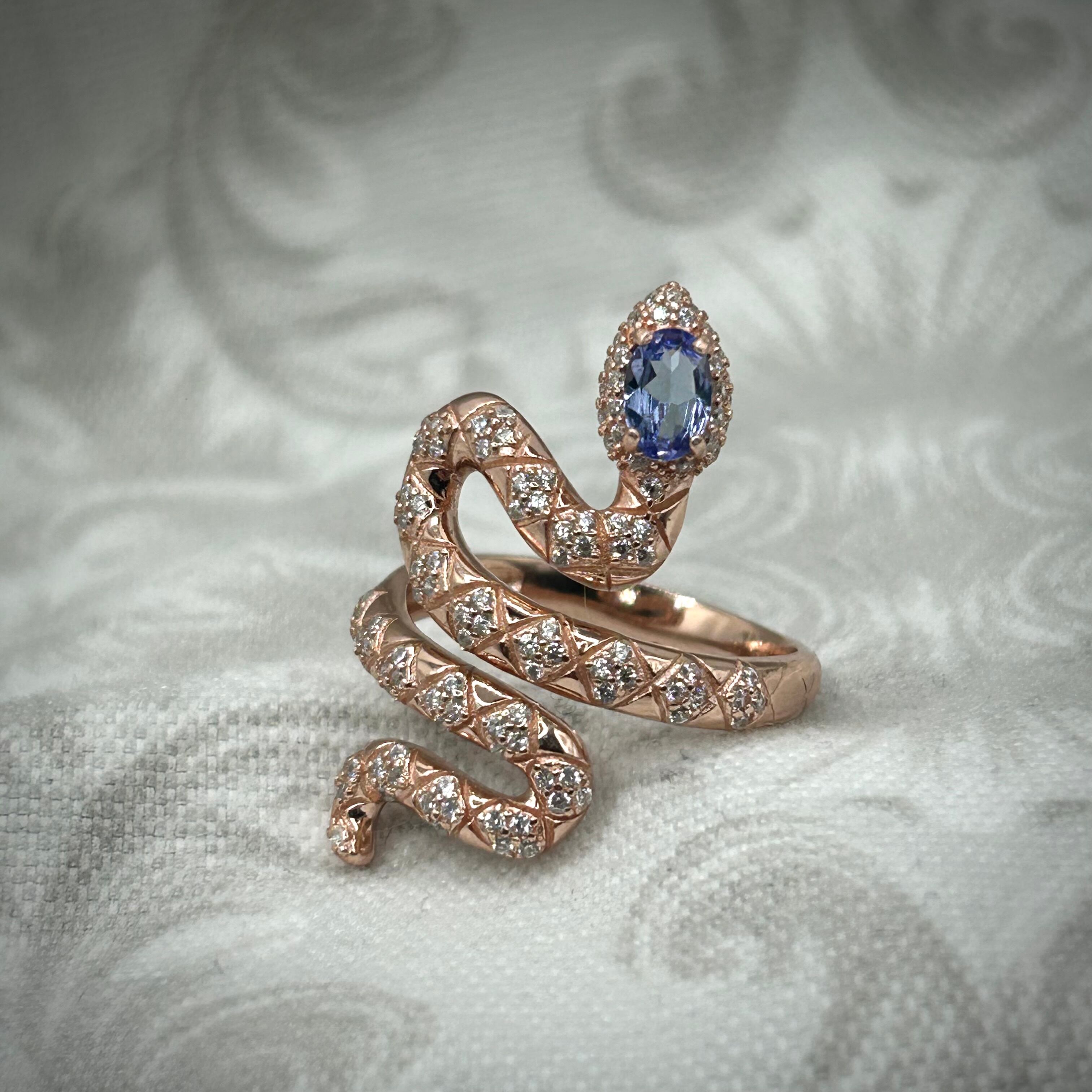 シルバー製ピンクゴールドカラー タンザナイトの蛇リング。