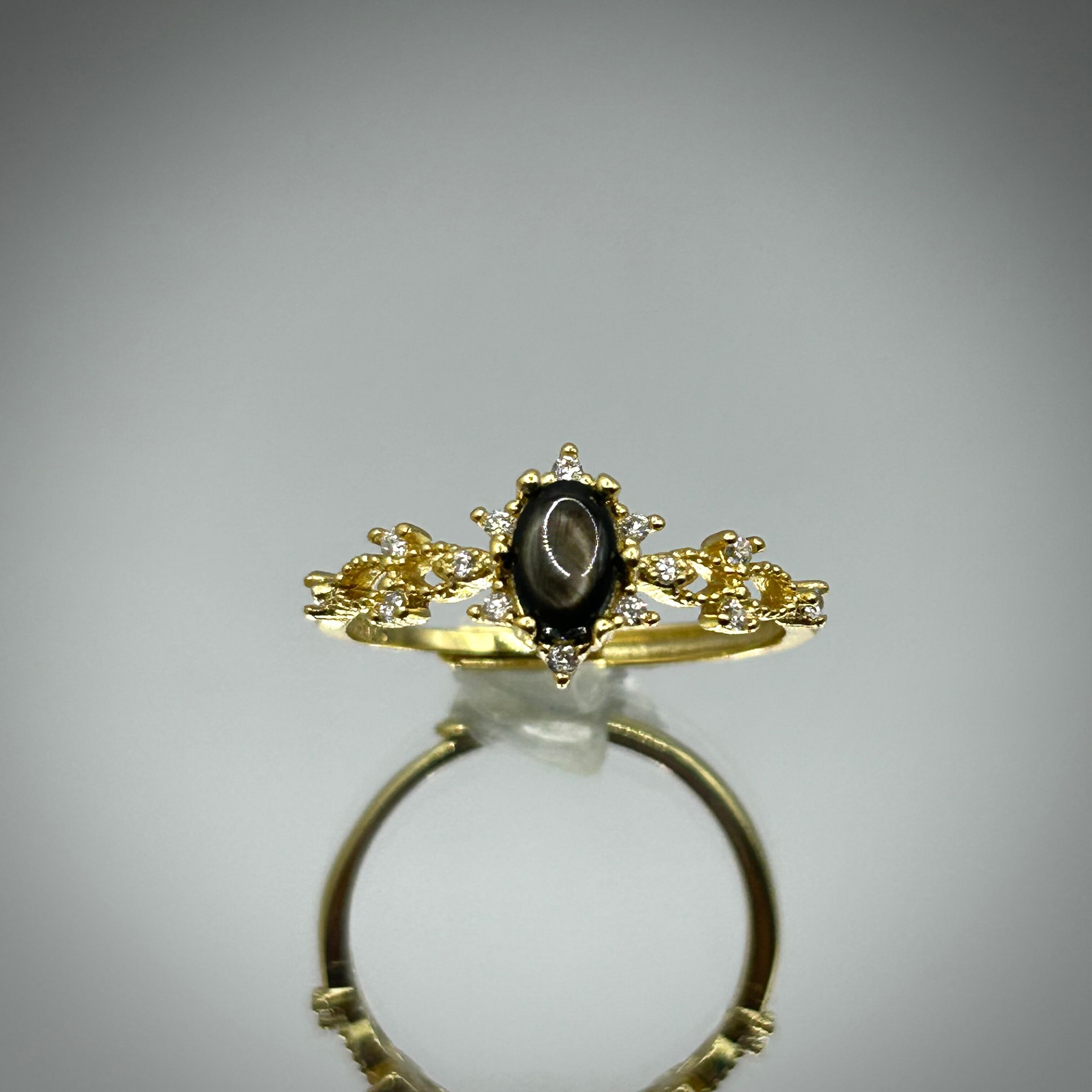 シルバー製ゴールドカラー スターサファイアのソーンリング。