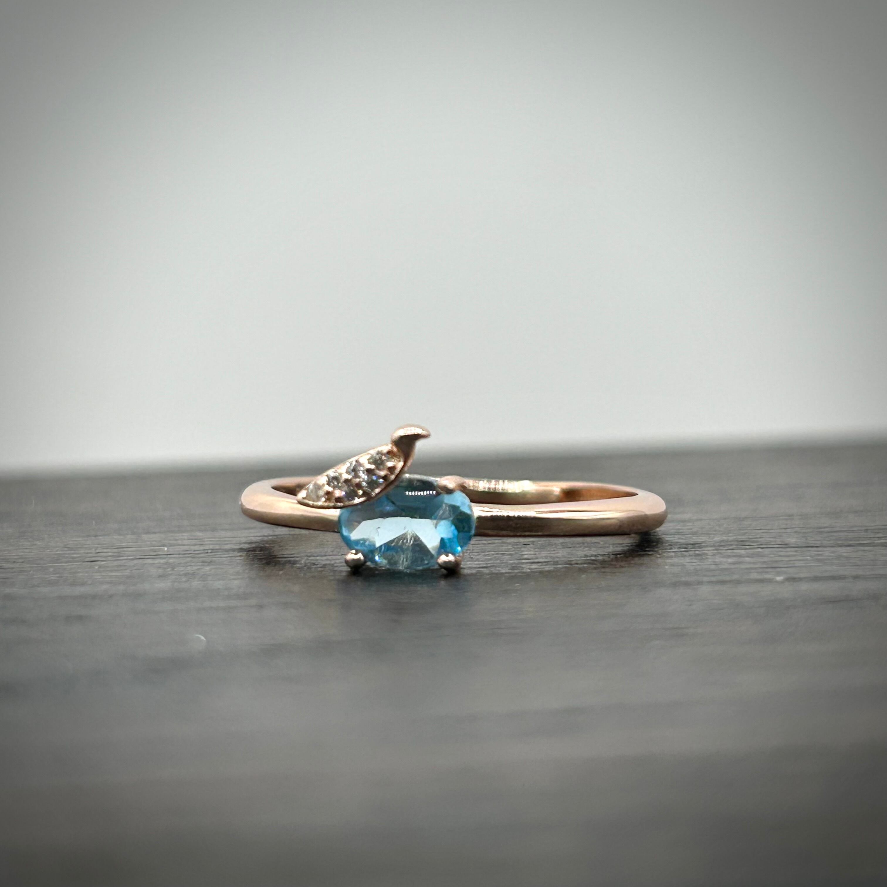 シルバー製ピンクゴールドカラー ブルートパーズのトリリング。