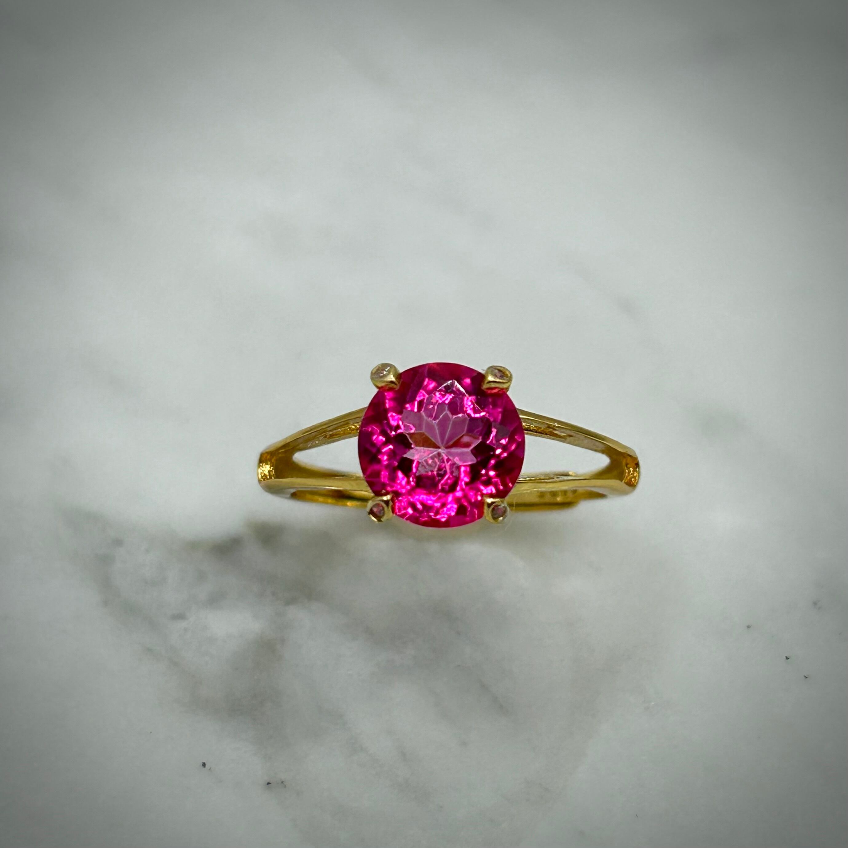 シルバー製ゴールドカラー ピンクトパーズのラウンドリング。